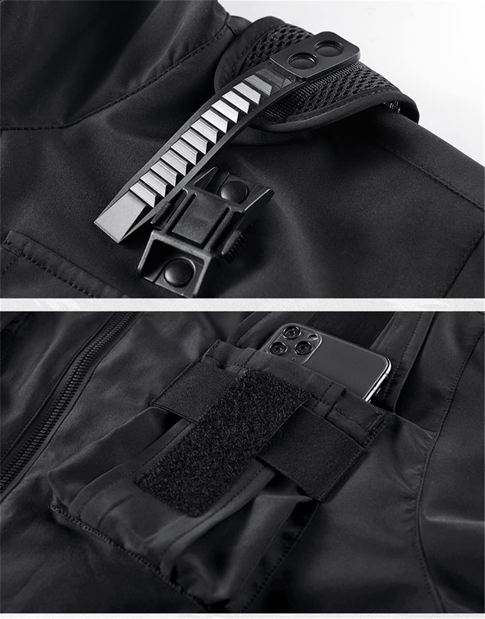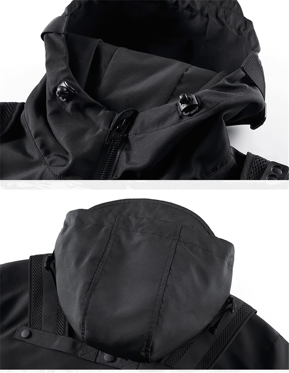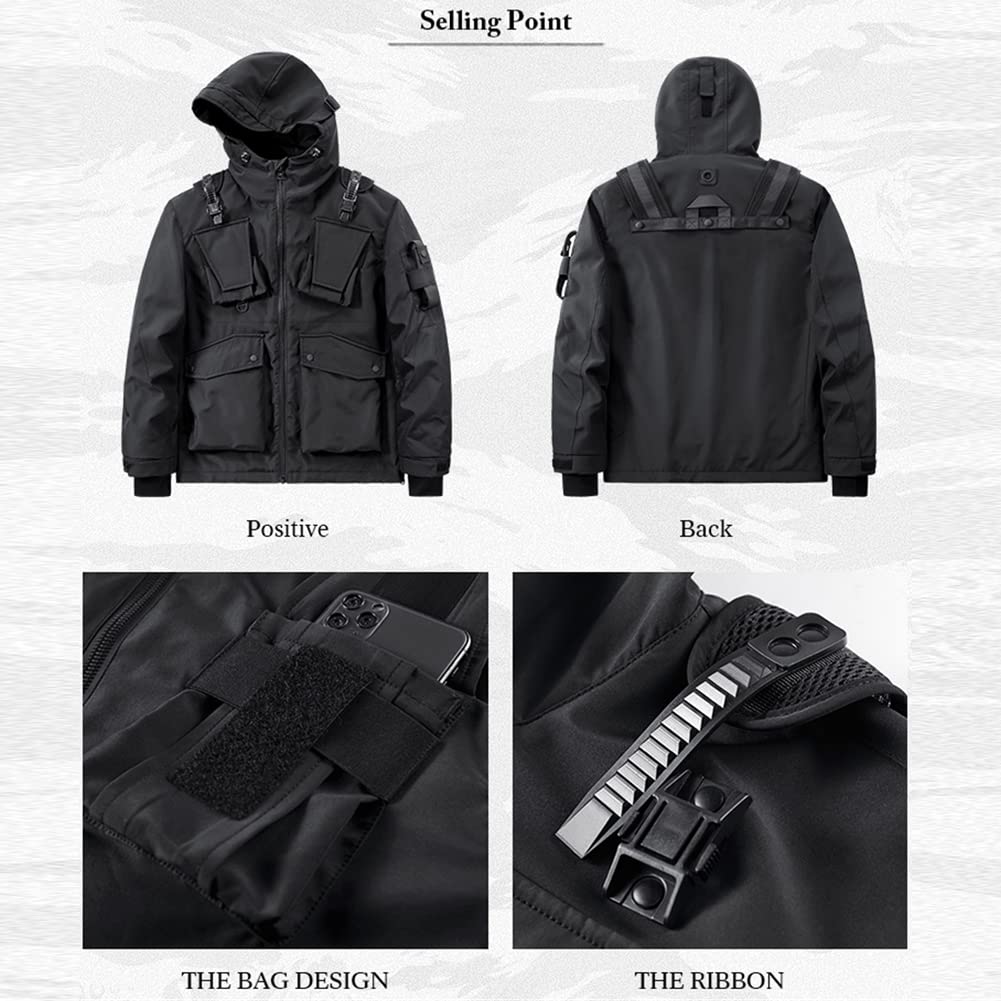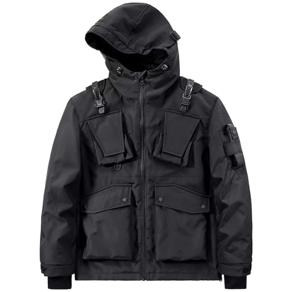 Description Men's Cargo Jacket Tactics Techwear Windbreaker Men Streetwear Jacket Coat Autumn Function Hooded Jackets Male Outerwear