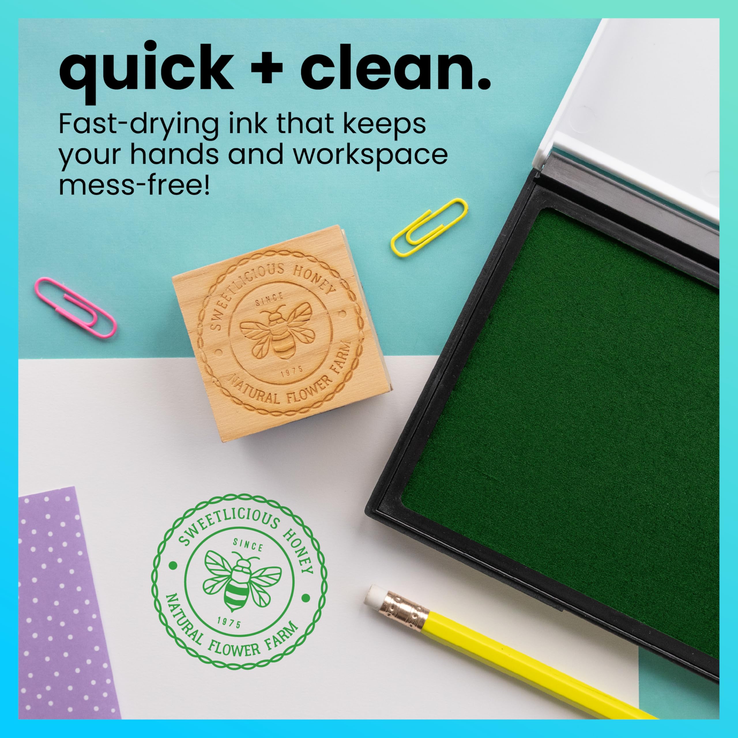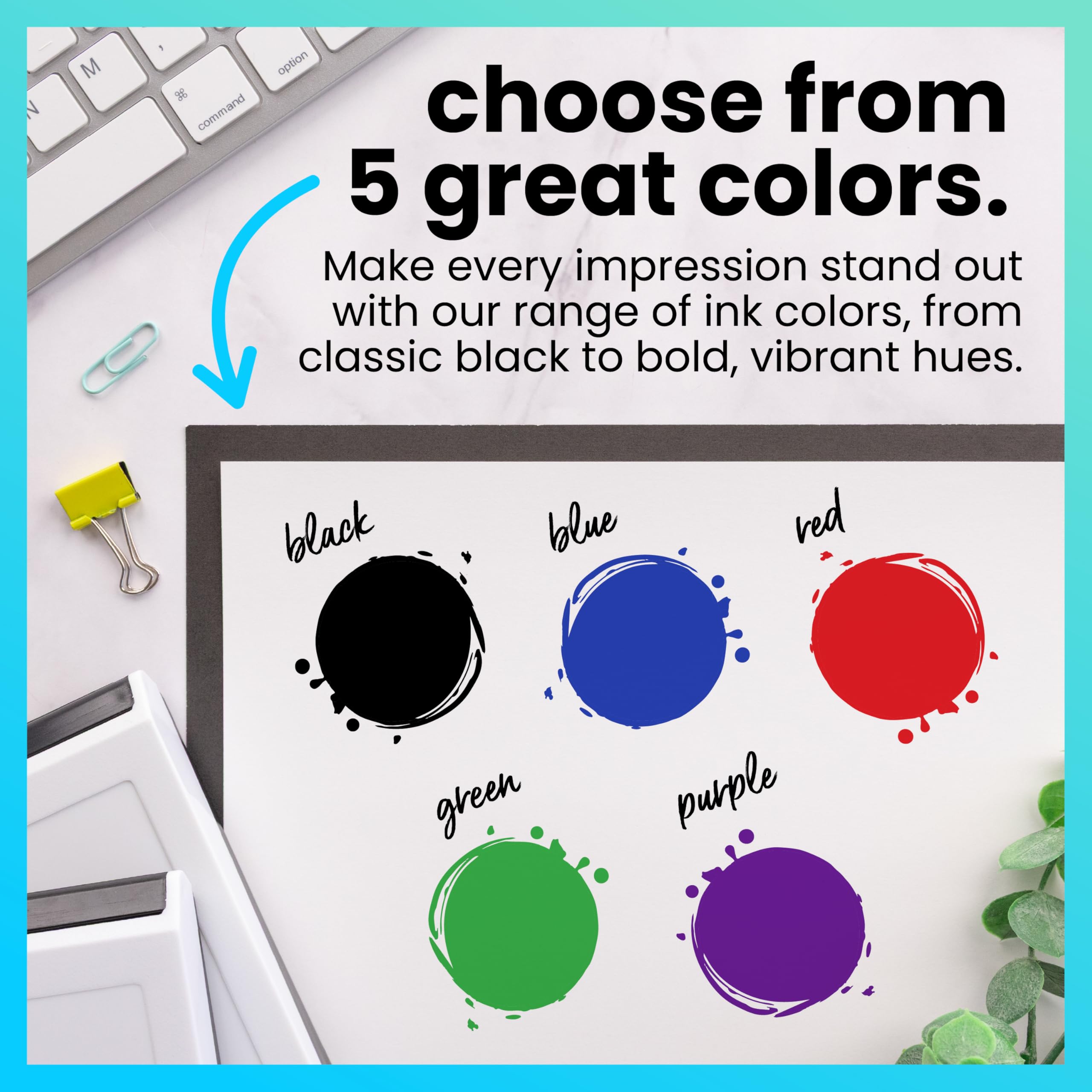 CHOOSE FROM A VARIETY OF INK COLORS - Choose from black, red, blue, green, purple and brown ink colors to perfectly match your stamp