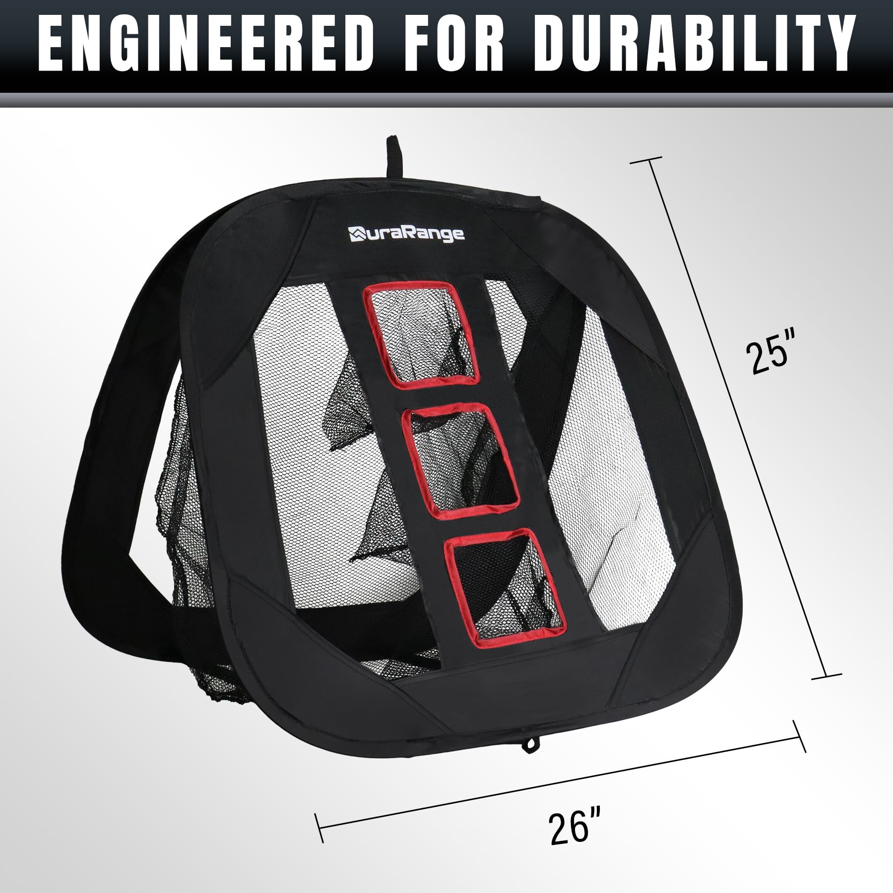 Versatile Training System: the DuraRange collapsible golf net features a three-target system to challenge players of all skill levels, enhancing accuracy in trajectory and distance. Side-catching pockets prevent balls from scattering, keeping your practice efficient and focused.
