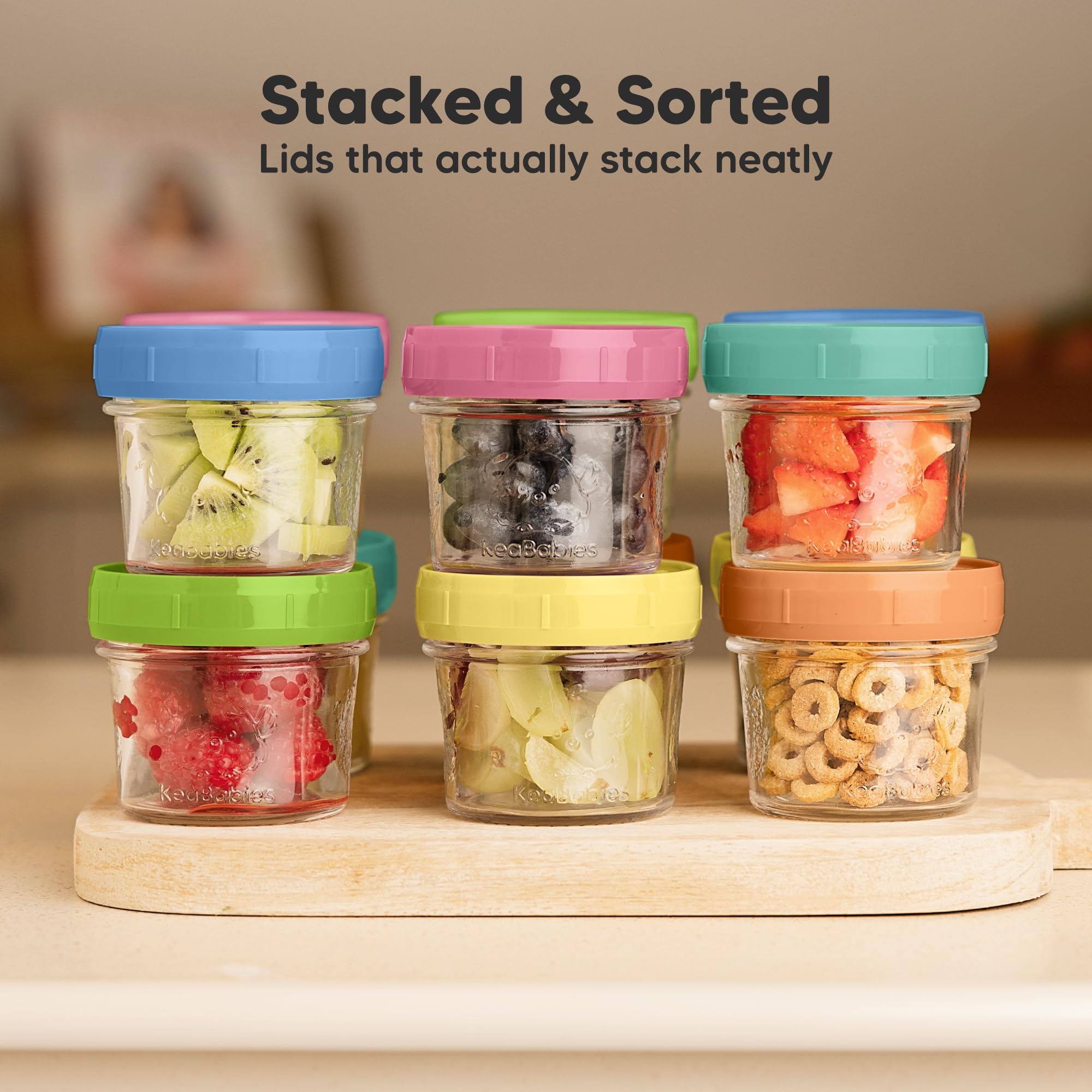 12-Pack, Durable 4oz Glass Jars with Lids – KeaBabies Baby Food Jars Glass check all the right boxes for a reliable baby snack containers. Ideal for busy parents as baby food containers for prepping and storing homemade meals smoothly.