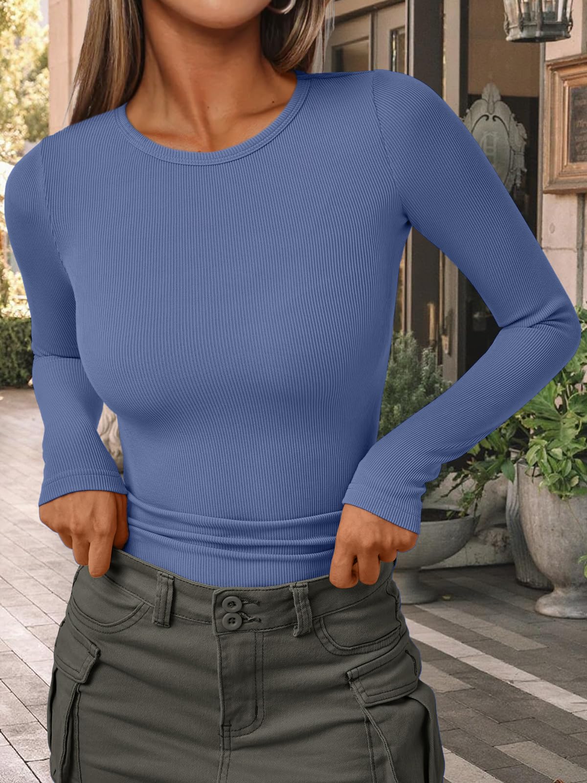 Long sleeve ribbed crewneck shirts for women, business casual dressy tops in fall & winter, suit for office,outdoor,home