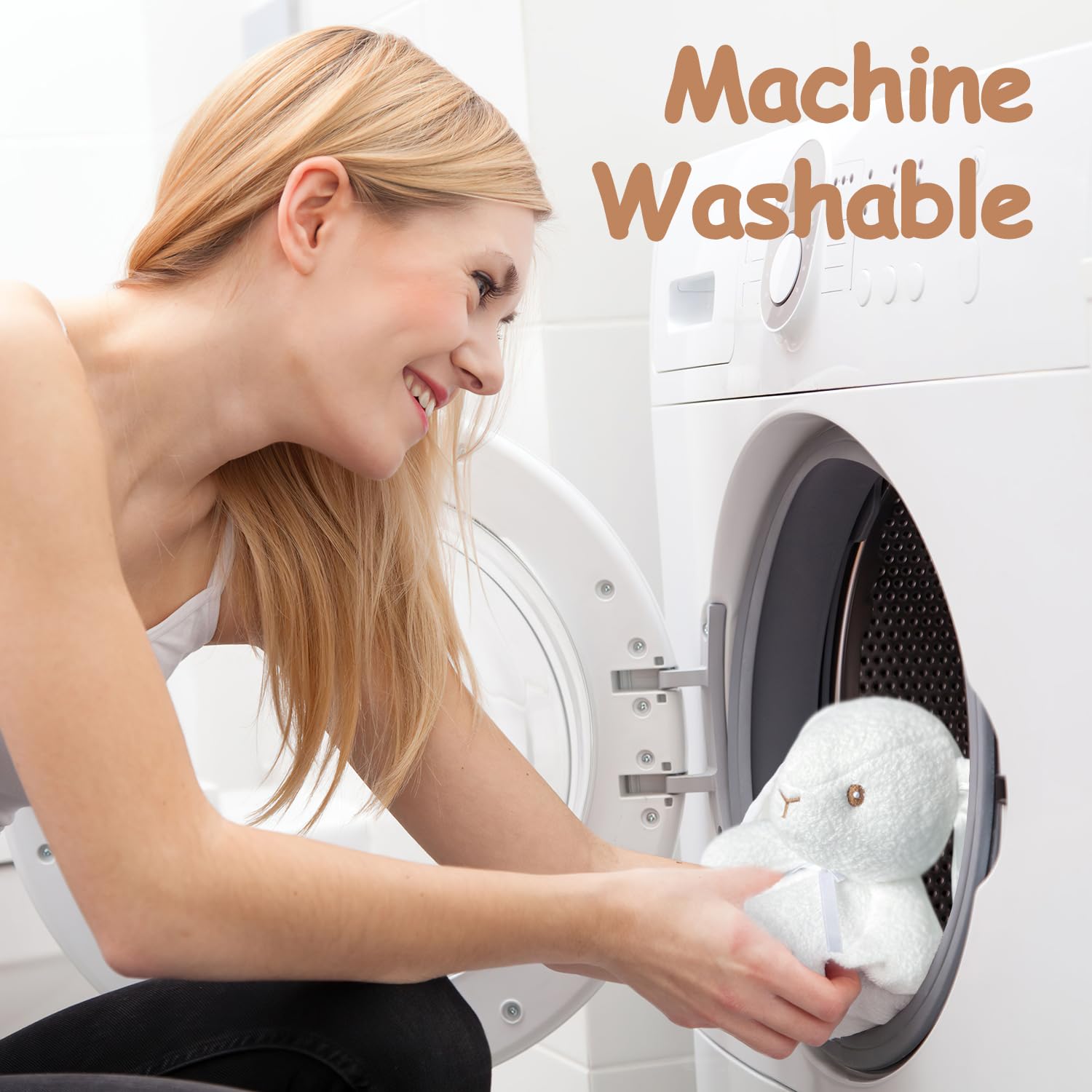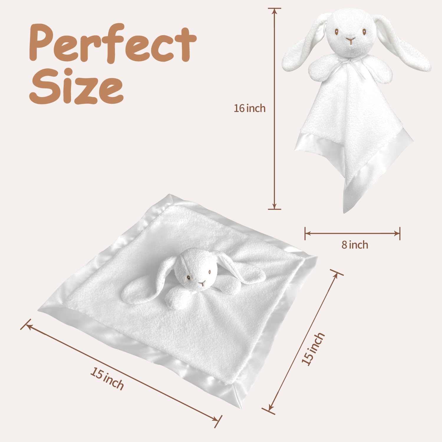 đăPerfect Size & Easy CleanăThe bunny security blanket measures 15''x15'', which is a great size for a stroller, a car seat, or to tag-along anywhere. Simply machine washes separately in cold water on a gentle cycle.