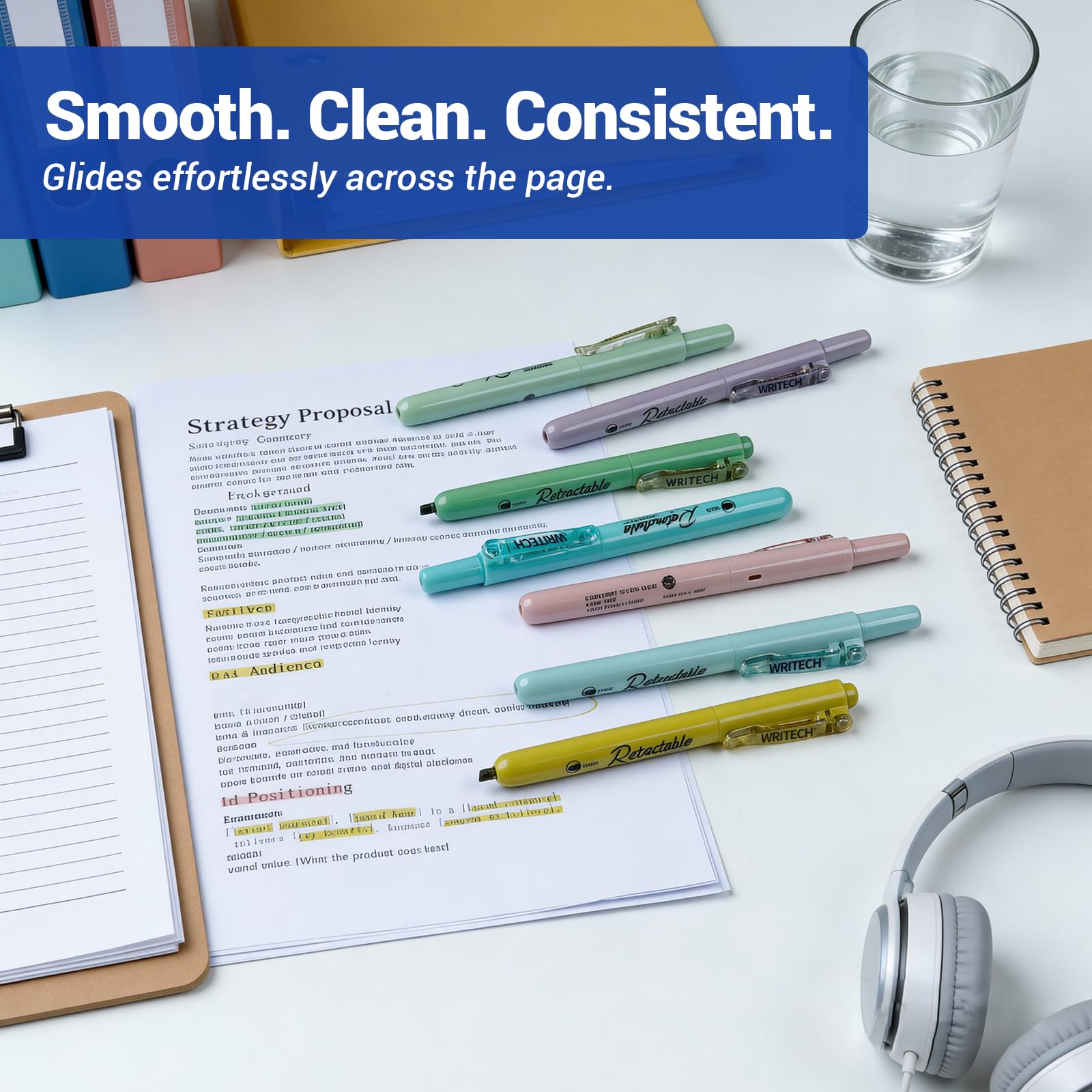 The nib automatically retracts when you clip the highlighter on your book or pocket, preventing stains or ink leakage when forget to retract the nib.