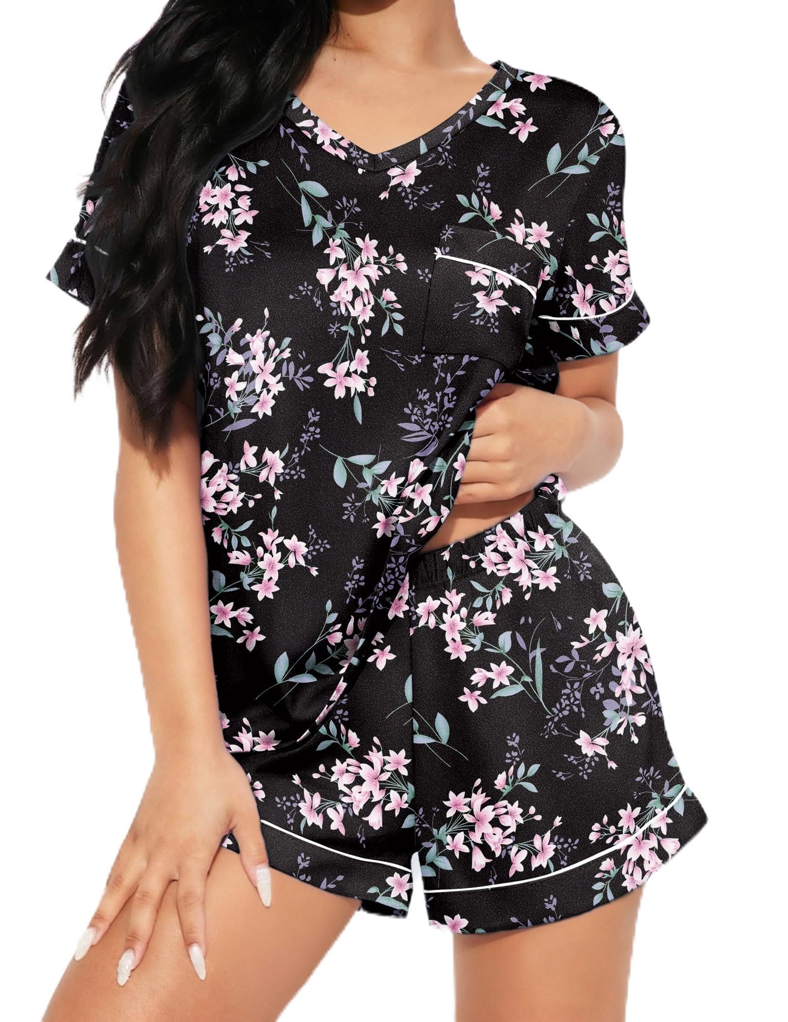 【Classic Design】The 2 piece short sleeve pj set fits well and allows for freedom of movement. Sleepwear features chest pocket, V neck and contrast piping trim Ensuring a restful night’s sleep and a cozy lounging experience
