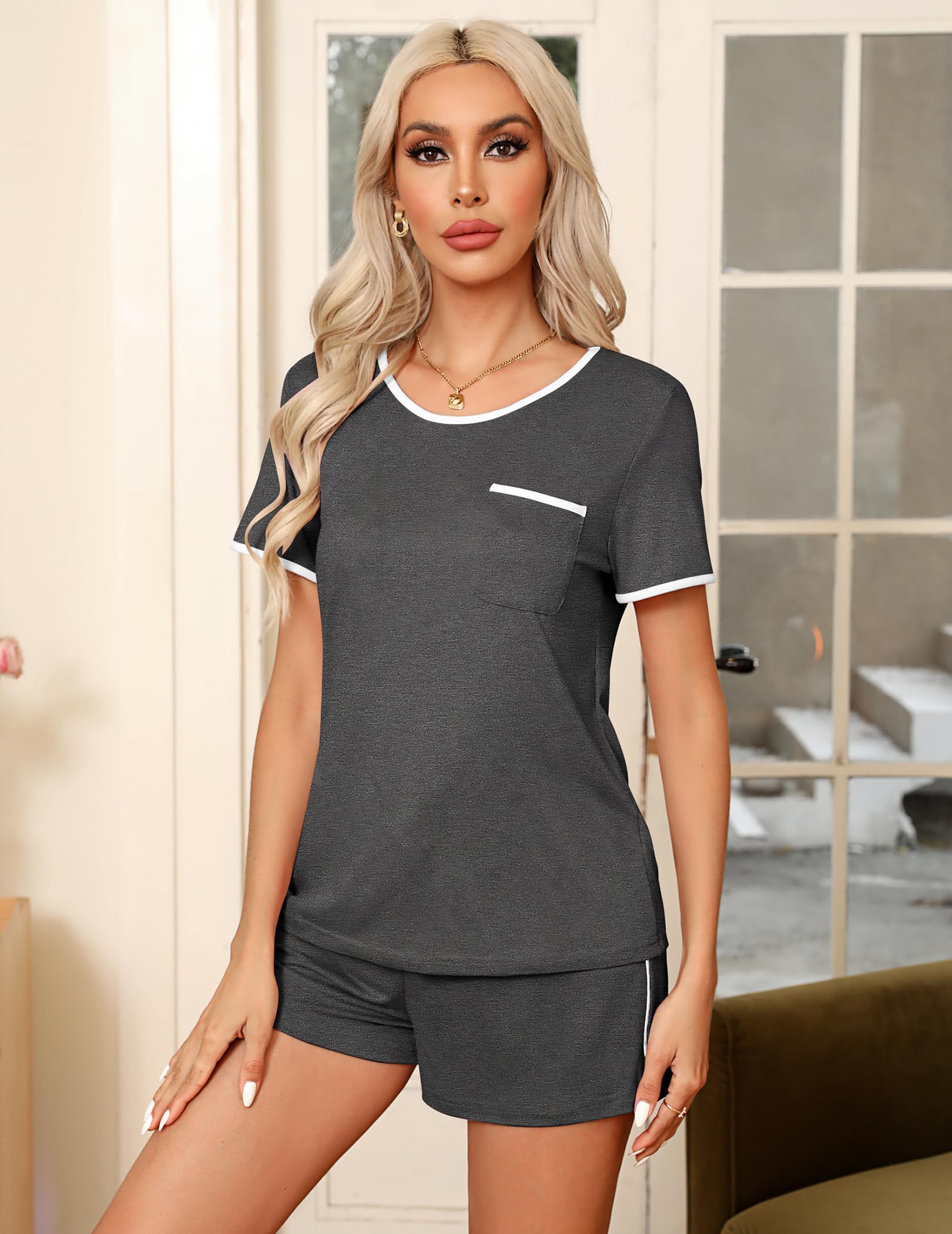 Short Sleeve Tops: Sleep shirt features round collar and chest pockets. Classic and convenient designs make this pjs sets more stylish and unique. Great nightwear, loungerwear that feels incredibly comfy and keeps you cool during hot nights