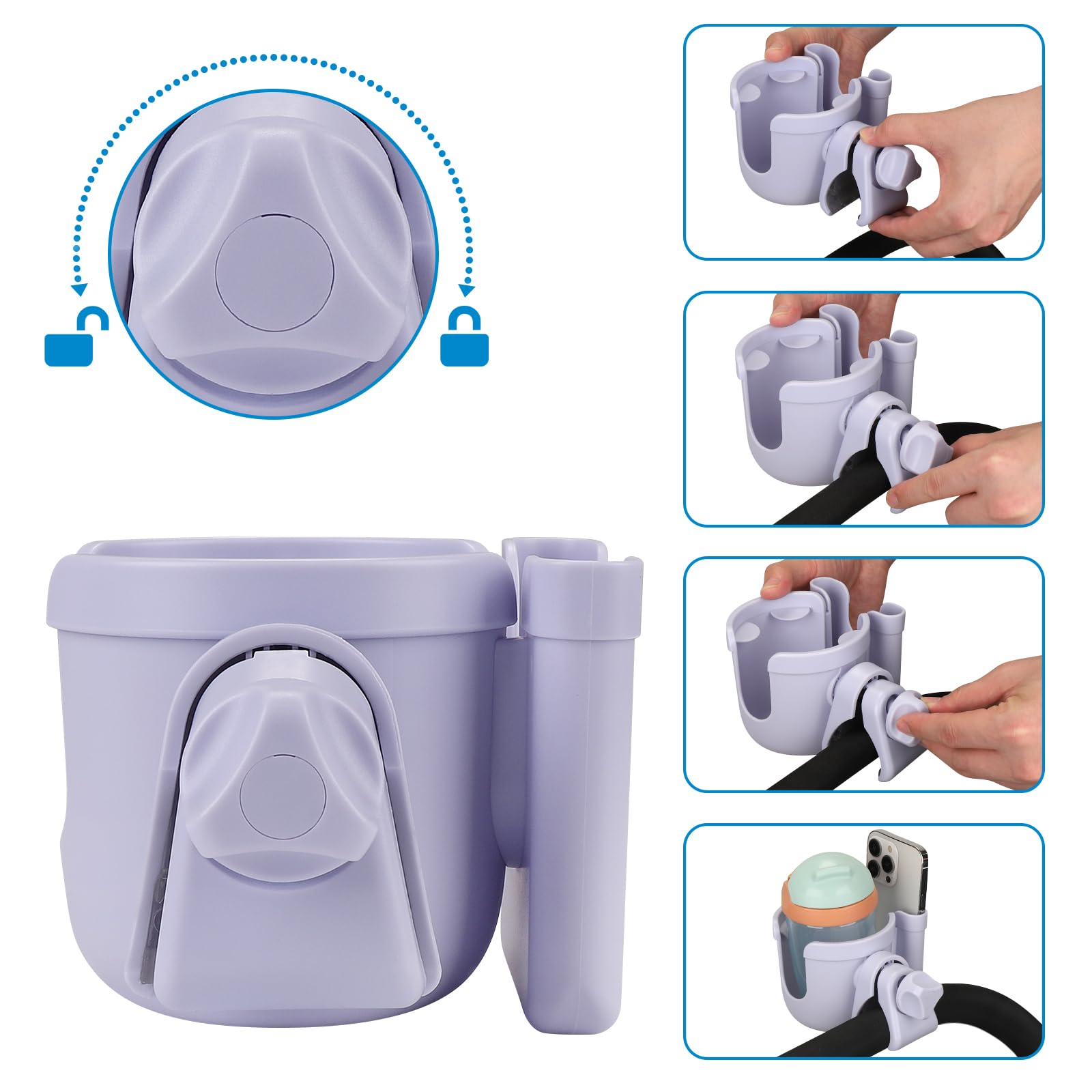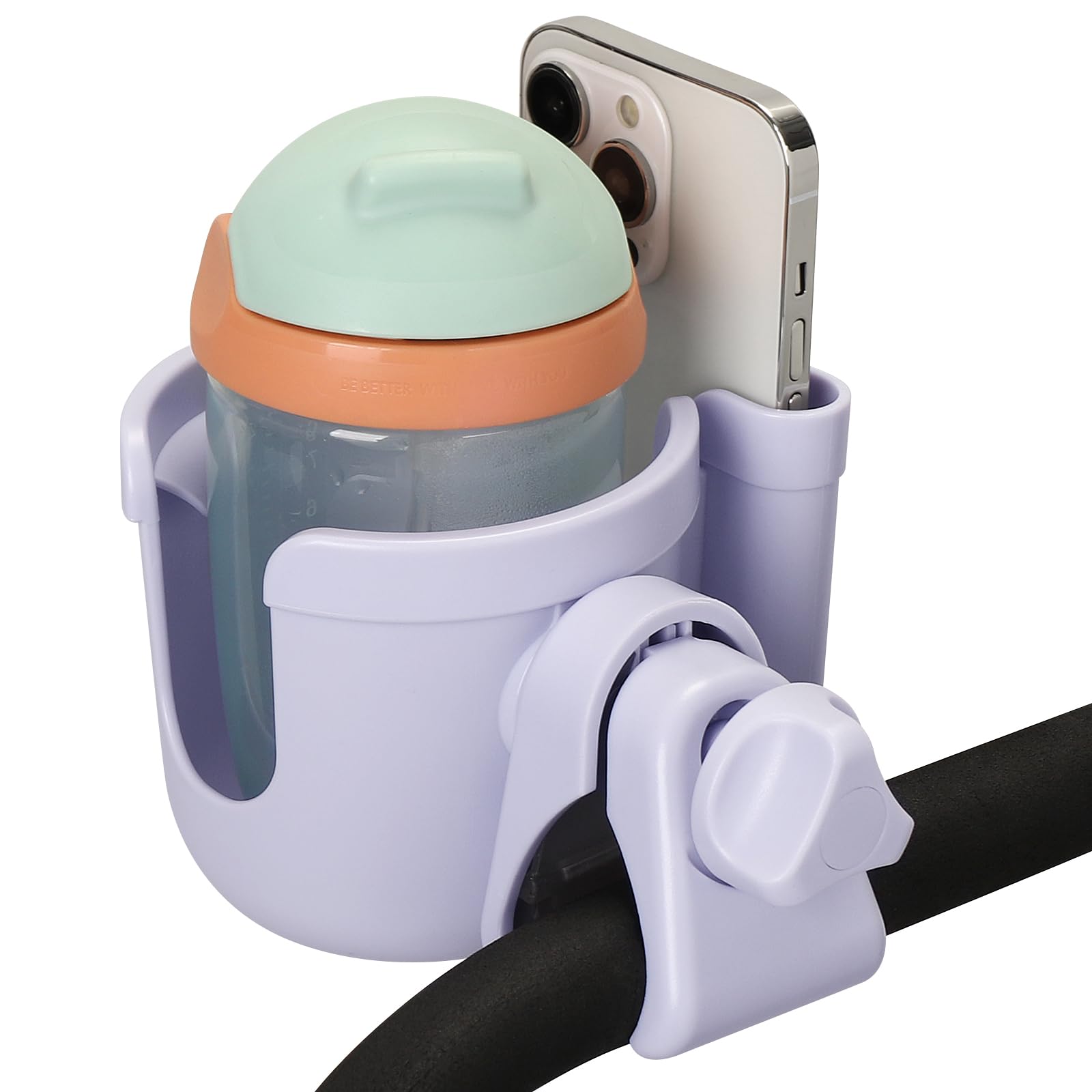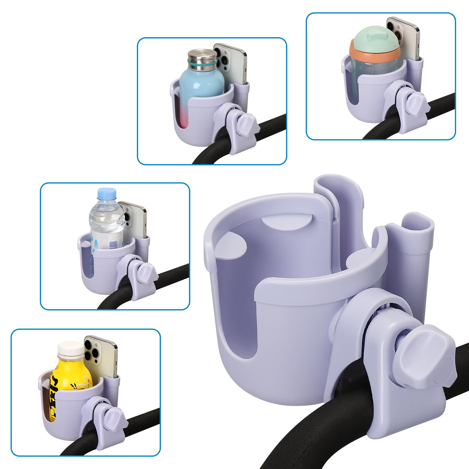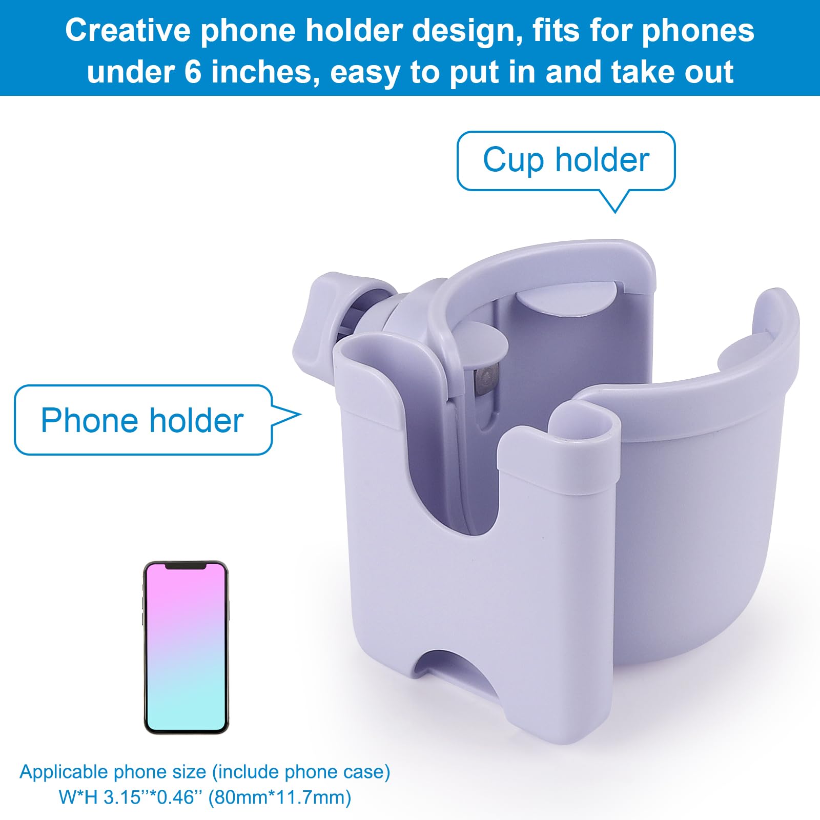 This 2-in-1 stroller cup holder with a phone holder, it can load drinks bottles and cell phone at the same time. You can see new messages, incoming calls in the first time when you are pushing a stroller or running on a treadmill. It is applicable to most cell phones on the market.