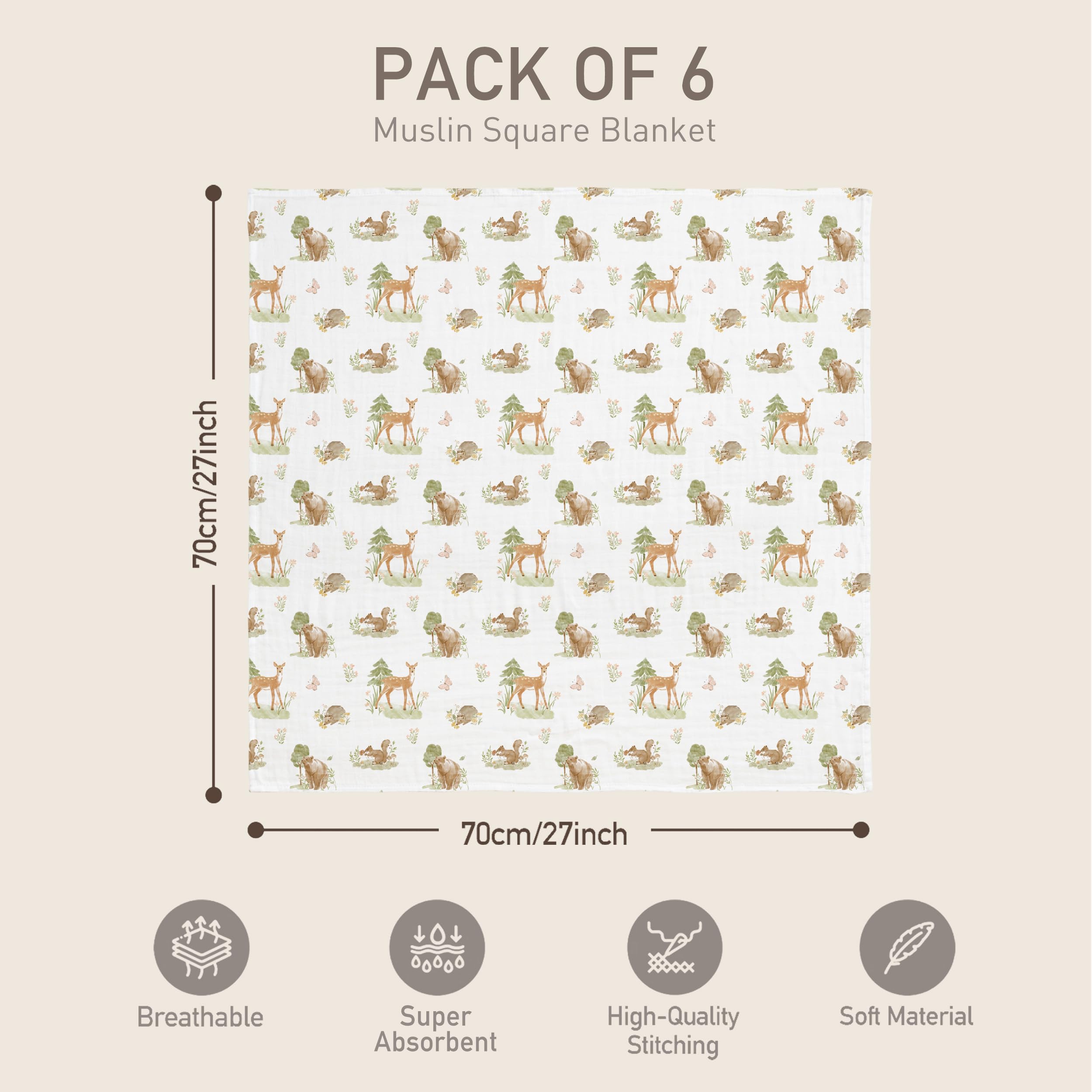 Four Seasons General & Versatile: Due to their practical size (70 x 70 cm, SIX-pack), these baby blankets can be used for a variety of purposes, such as a receiving blanket, cuddle blanket, nursing cover, sunscreen for strollers, burp cloth, car seat cover, play mat, changing pad, mini crib sheet, cleaning the face, catching spit-up, sunshade cover, picnic pad, or tummy time blanket. Fast-drying and ready for the next use, they provide even more day-to-day versatility for parents