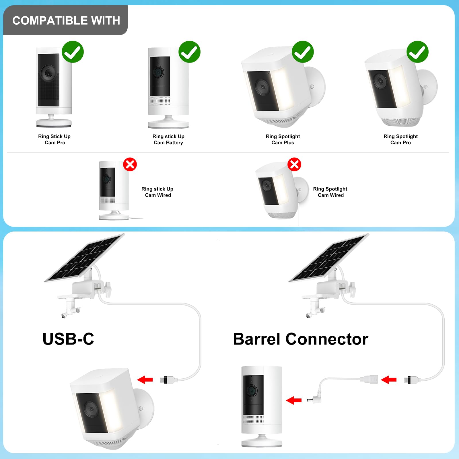 Universal Design: Compatible with Ring Stick Up Cam Battery, Stick Up Cam Pro Battery, Spotlight Cam Battery, Spotlight Cam Plus Battery, Spotlight Cam Pro Battery.