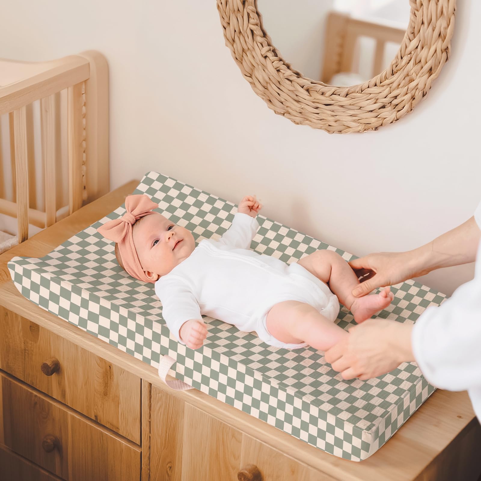 Vintage Charm: This changing pad cover features a retro plaid pattern, adding a touch of vintage charm to your baby's room. The retro plaid design creates a nostalgic atmosphere and is suitable for both boys and girls. This adorable design not only protects the changing pad but also adds a touch of retro flair to your nursery.