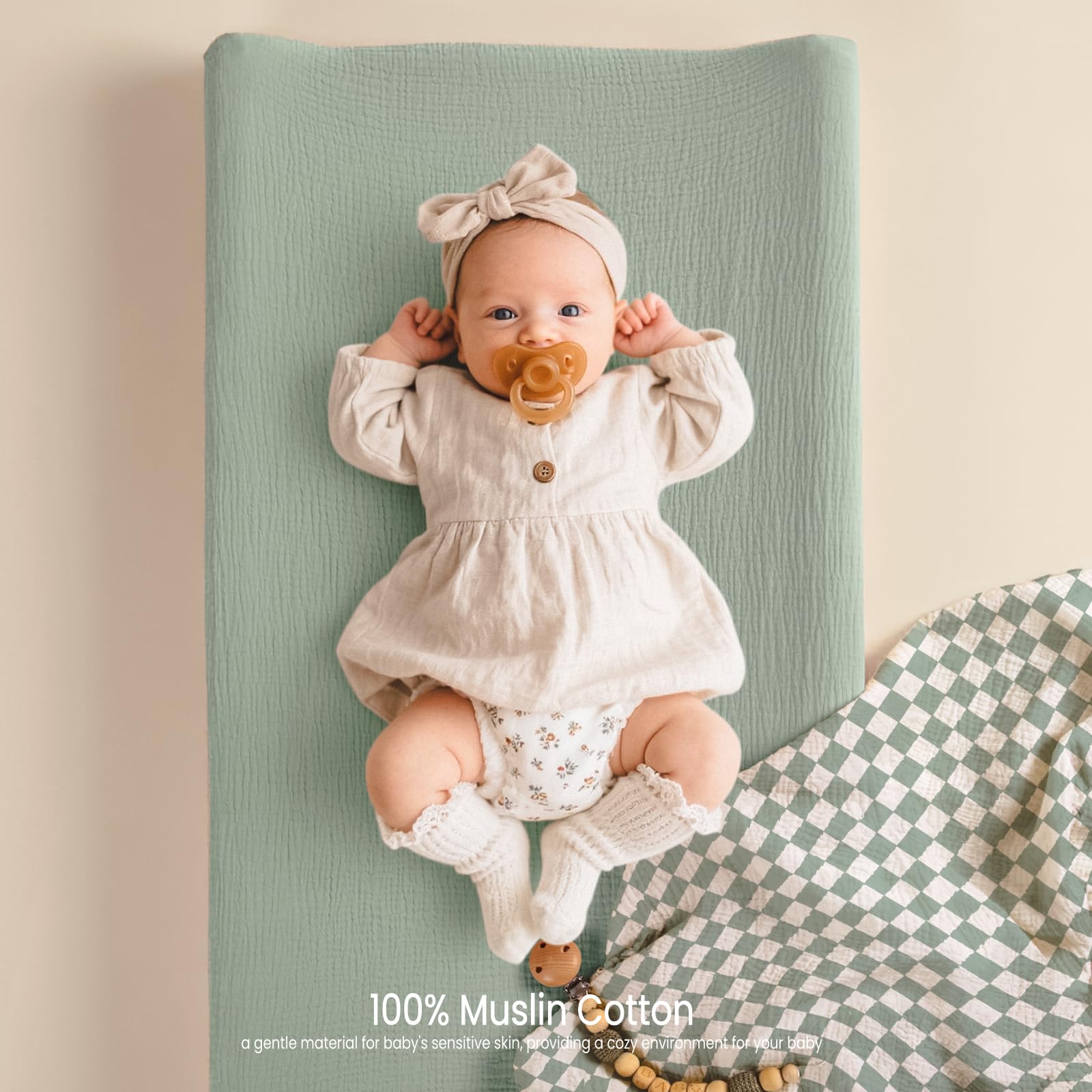 Soft & Breathable Muslin Cotton: Give your baby the comfort they deserve with our breathable muslin cotton changing pad cover. Its lightweight and ultra soft surface feels gentle against your baby’s sensitive skin, while the breathable weave promotes airflow to keep your little one cool and content during changes.