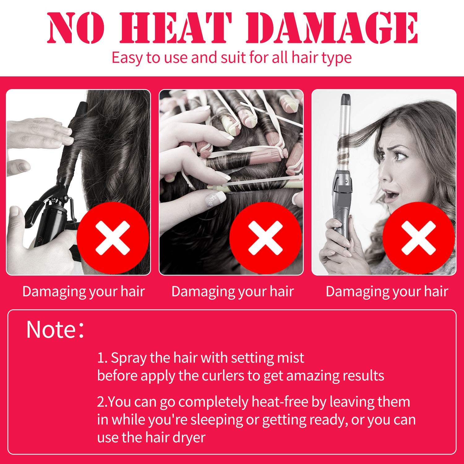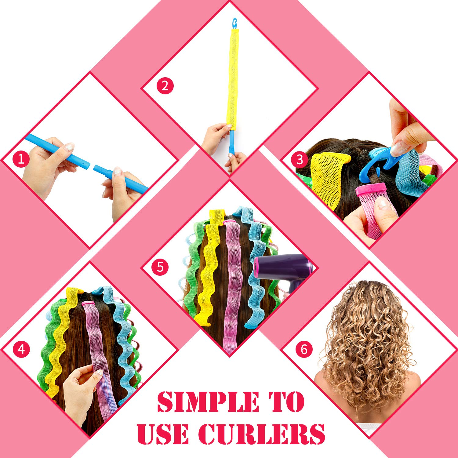 Easy to apply with amazing results: these magical hair curlers are made of quality materials for safe and long time use, easy to control, do your entire head of hair in 5 minutes, use of all ages and all hair types from thin, straight hair, make beautiful body wave hair without damage, and are comfortable to sleep