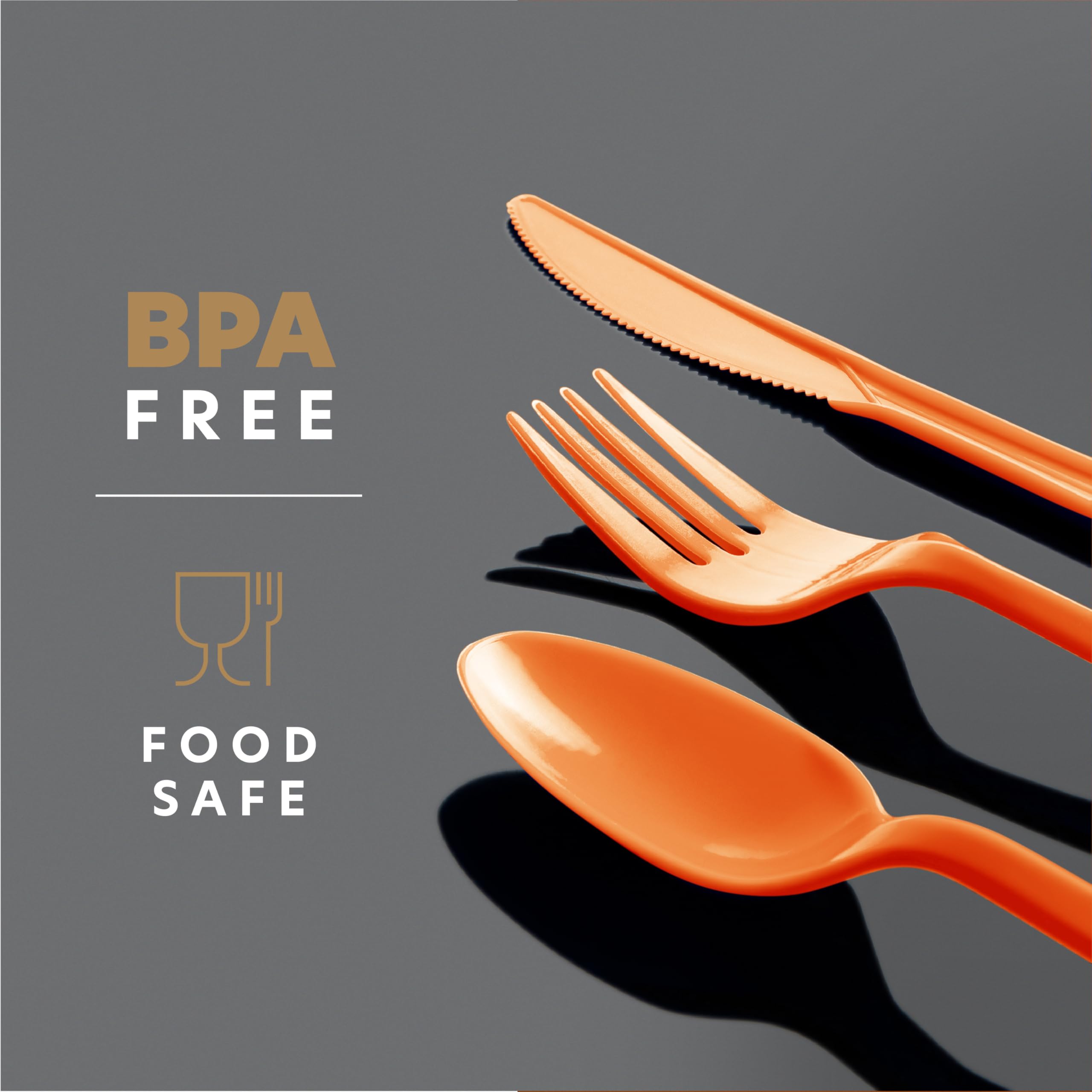 Medium weight plastic cutlery for parties, dinners, and more. Made with food safe and quality BPA free plastic.