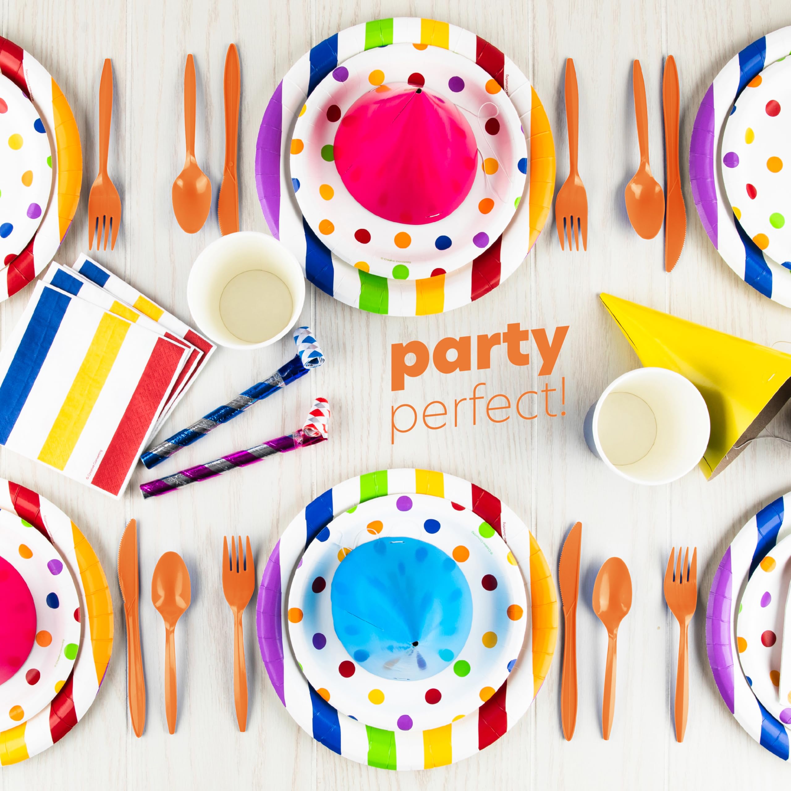 Colored cutlery set for parties and events. A variety of colors available to suit any taste or party theme. Perfect cutlery set for birthday parties, dinner, bbq, holiday dinners and more.