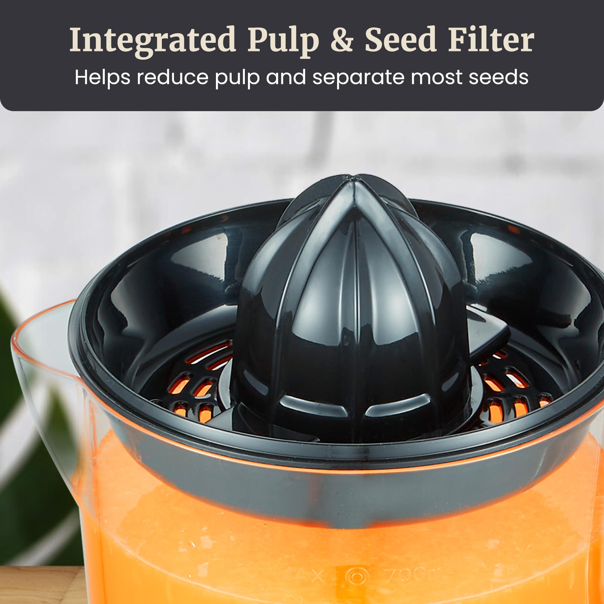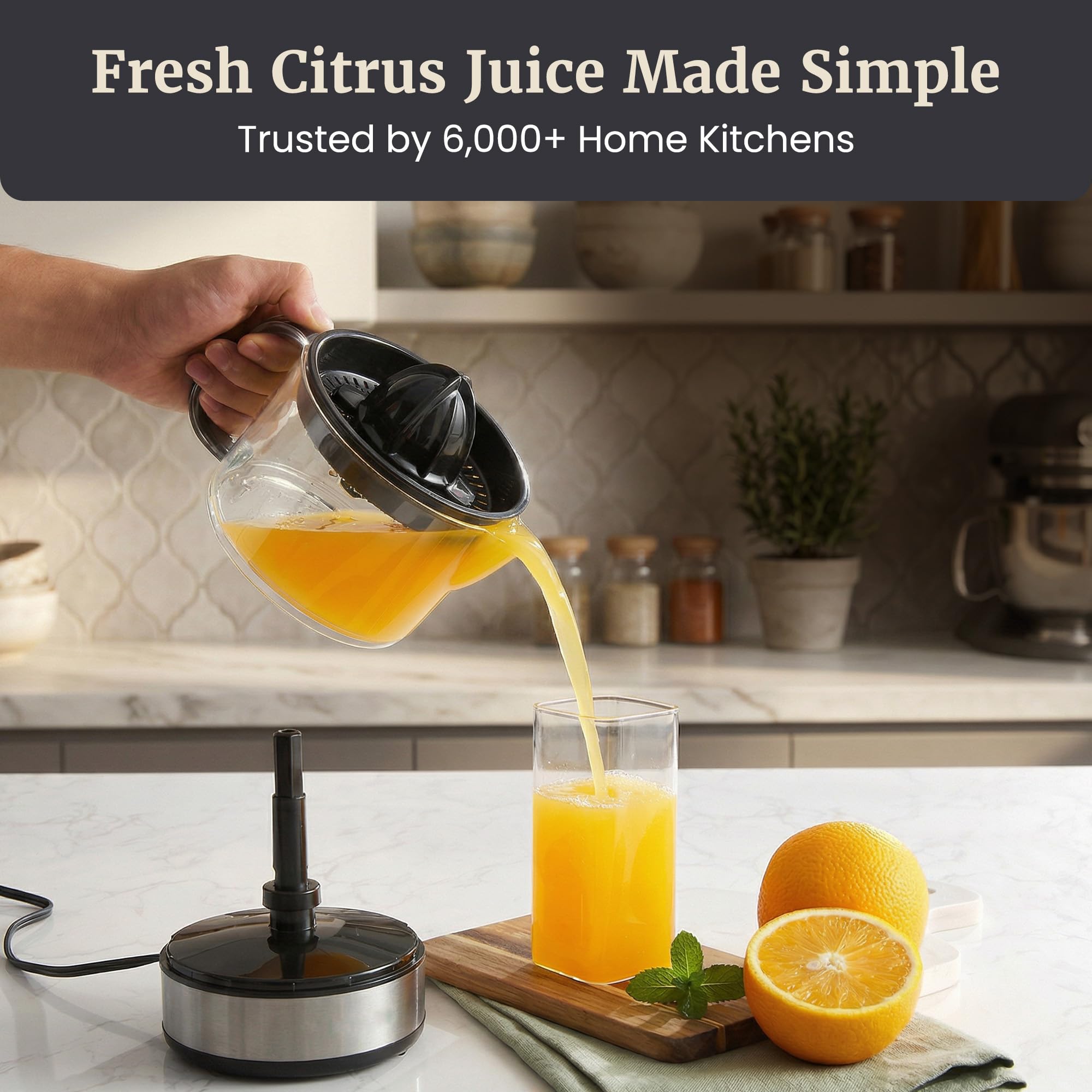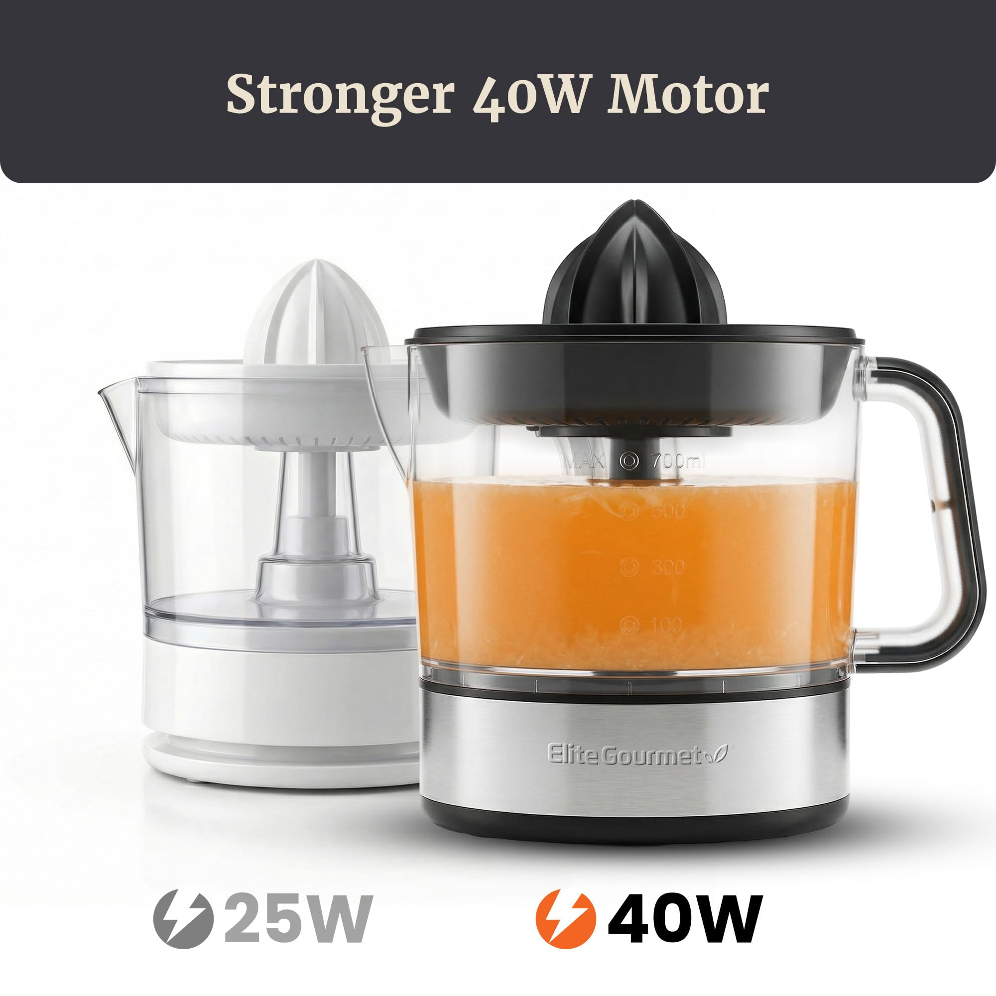 MORE POWER THAN STANDARD 25W MODELS: Equipped with a stronger 40W motor and auto-reversing extraction for faster juice yield vs. typical 25W citrus juicers. Designed for smooth, efficient home juicing.