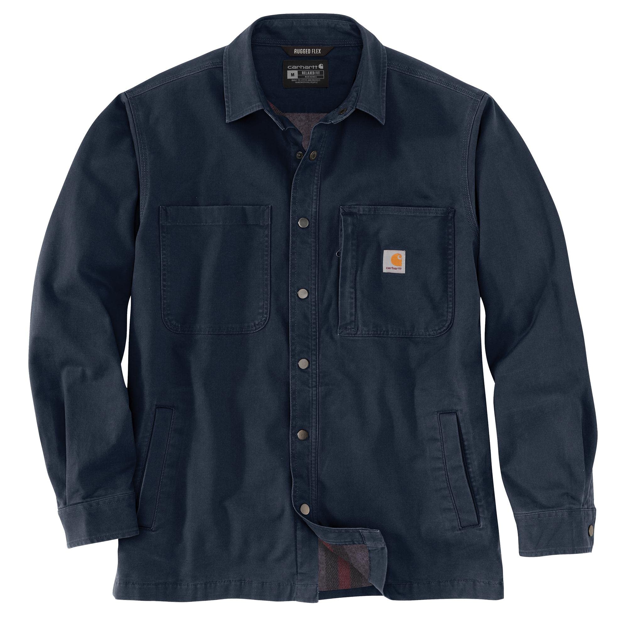 Description A workwear essential for a reason, this men's Carhartt shirt jac keeps you moving with ease. Durable cotton canvas has built in stretch for great range of movement. A fleece lining adds extra warmth on cold mornings.