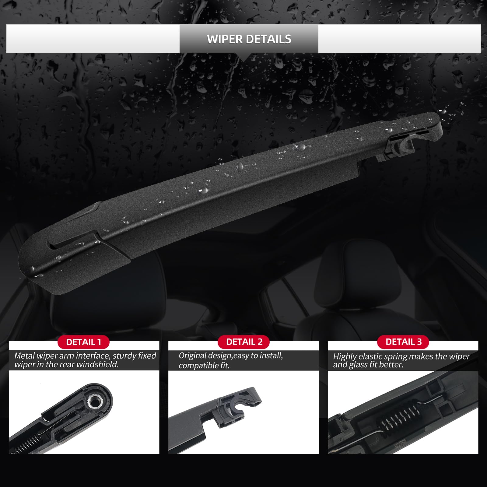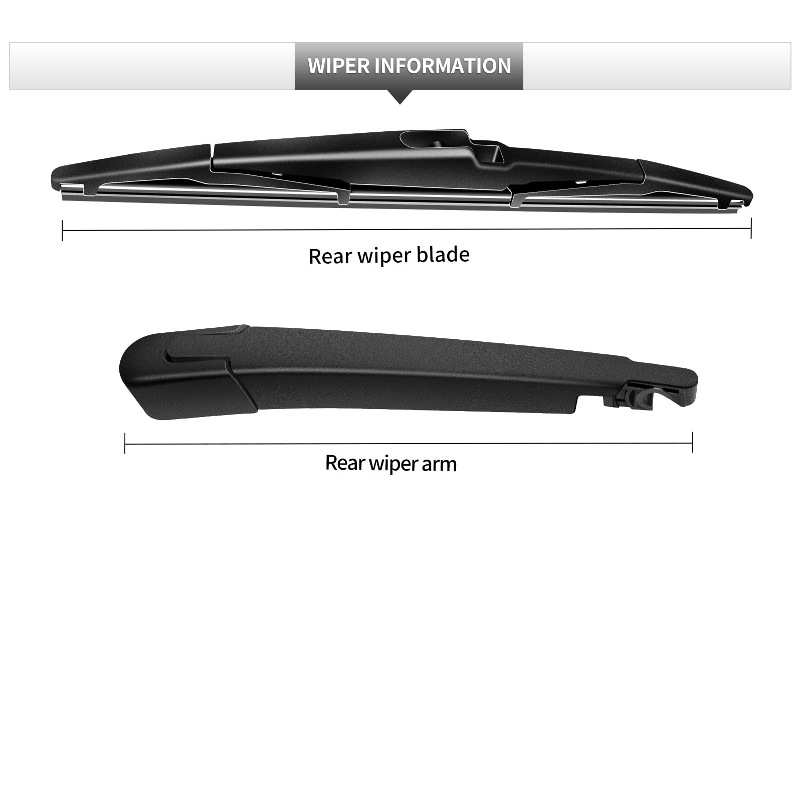 Packing List: Rear Wiper Blade and Arm set with rear windshield wiper arm + rear blade