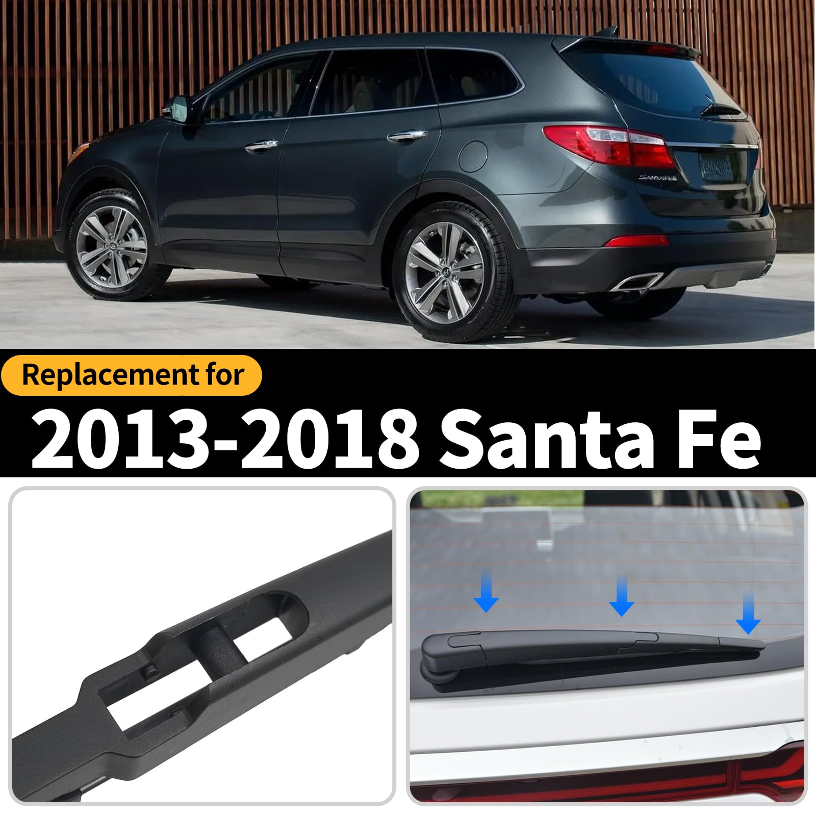 Fitment:Replacement for Hyundai Santa Fe 2013 2014 2015 2016 2017 2019 Rear Windshield Wiper Blade and Arm Set