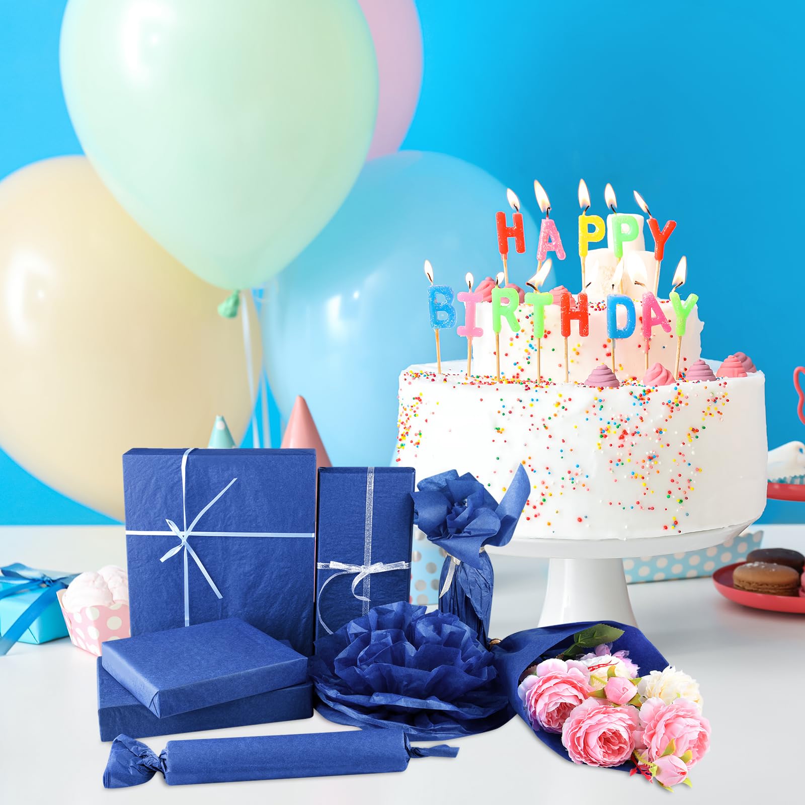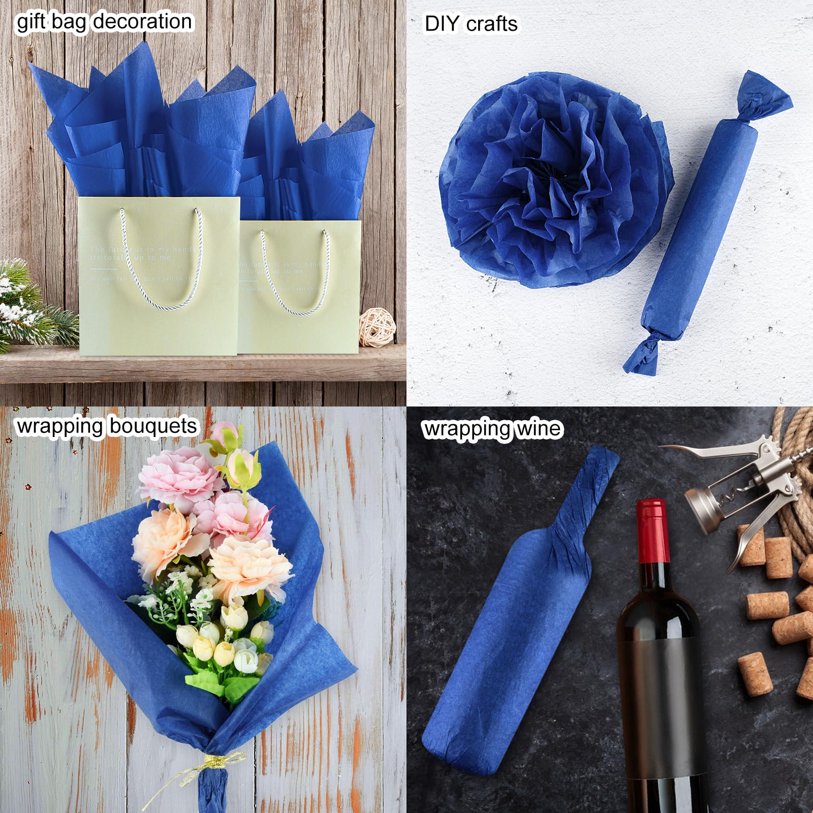 Multiple Uses: Blue wrapping paper is a pleasant choice for wrapping gifts, gift bag decoration, gift box filling, wrapping bouquets, wine packaging, DIY crafts, paper flower making, basket liners