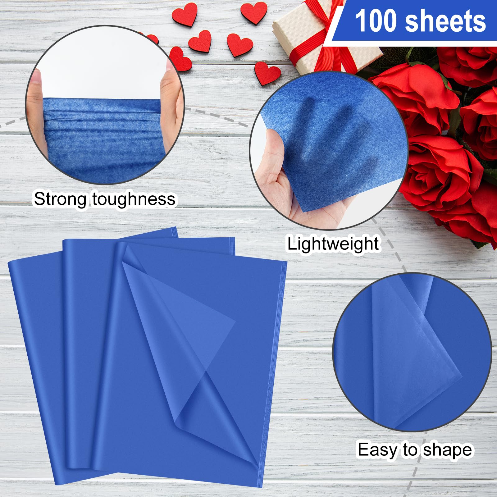 You Will Get: 100 sheets of navy blue wrapping tissue paper bulk, enough to meet your daily and party decorations needs