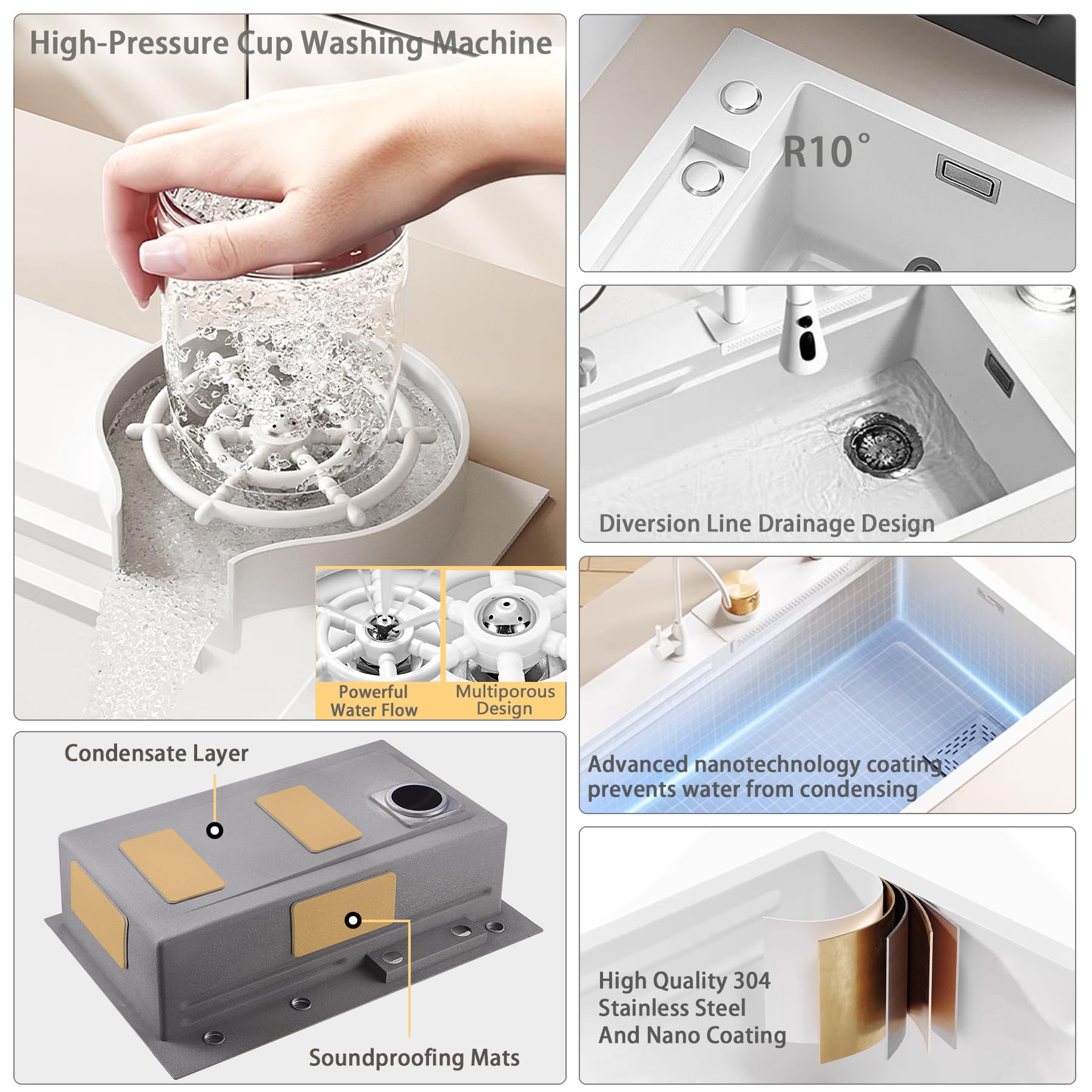 【High-Quality Material】Crafted from premium 304 stainless steel, this sink boasts corrosion resistance, high-temperature resistance, and rust ion. The built-in nano-technology coating s the condensation of oil and water, making cleaning easier
