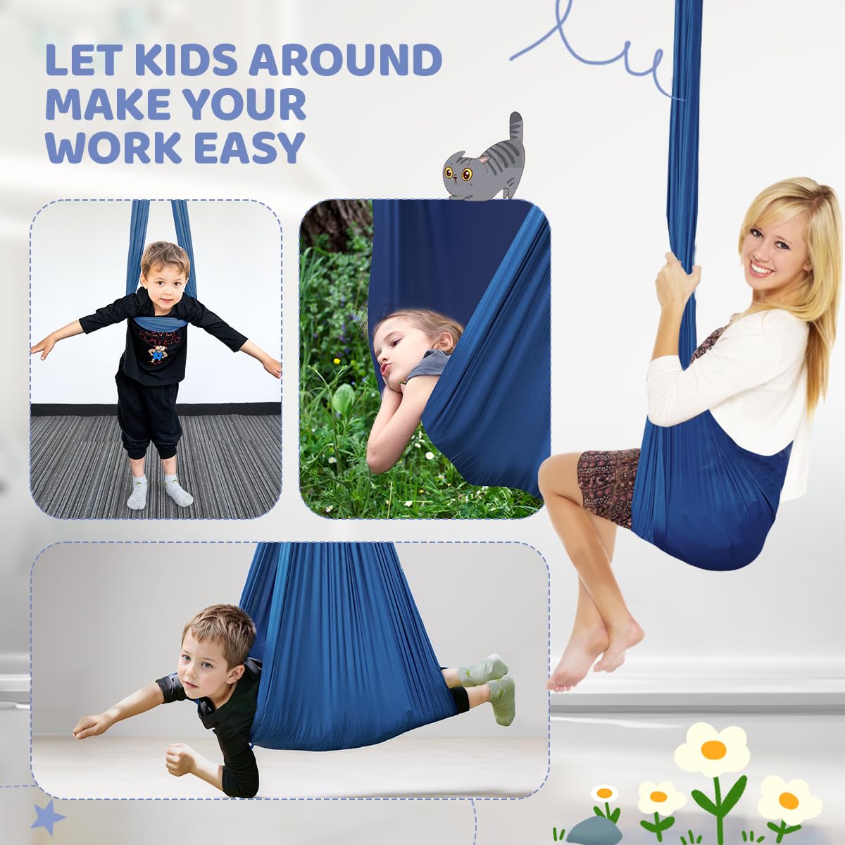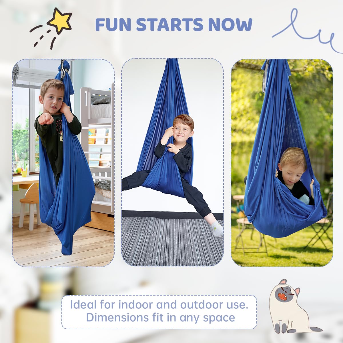 [A RELAXING SPACE FOR KIDS ] Aokitec sensory kids swing help your children relax and get their bearings in. The cocoon swing provides a hug-like effect for little ones. The wonderful experience and sensory input will let your kids spend hours in.