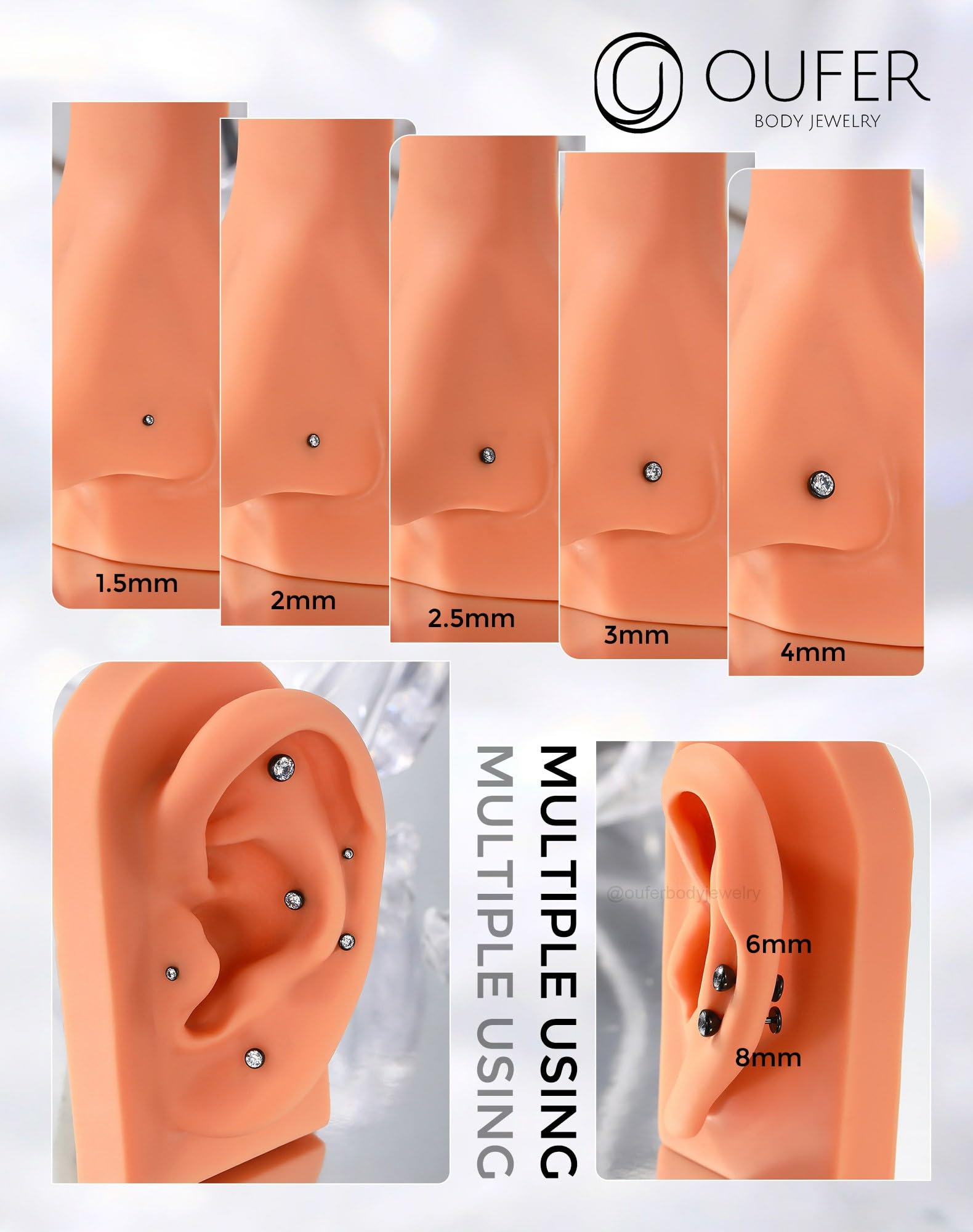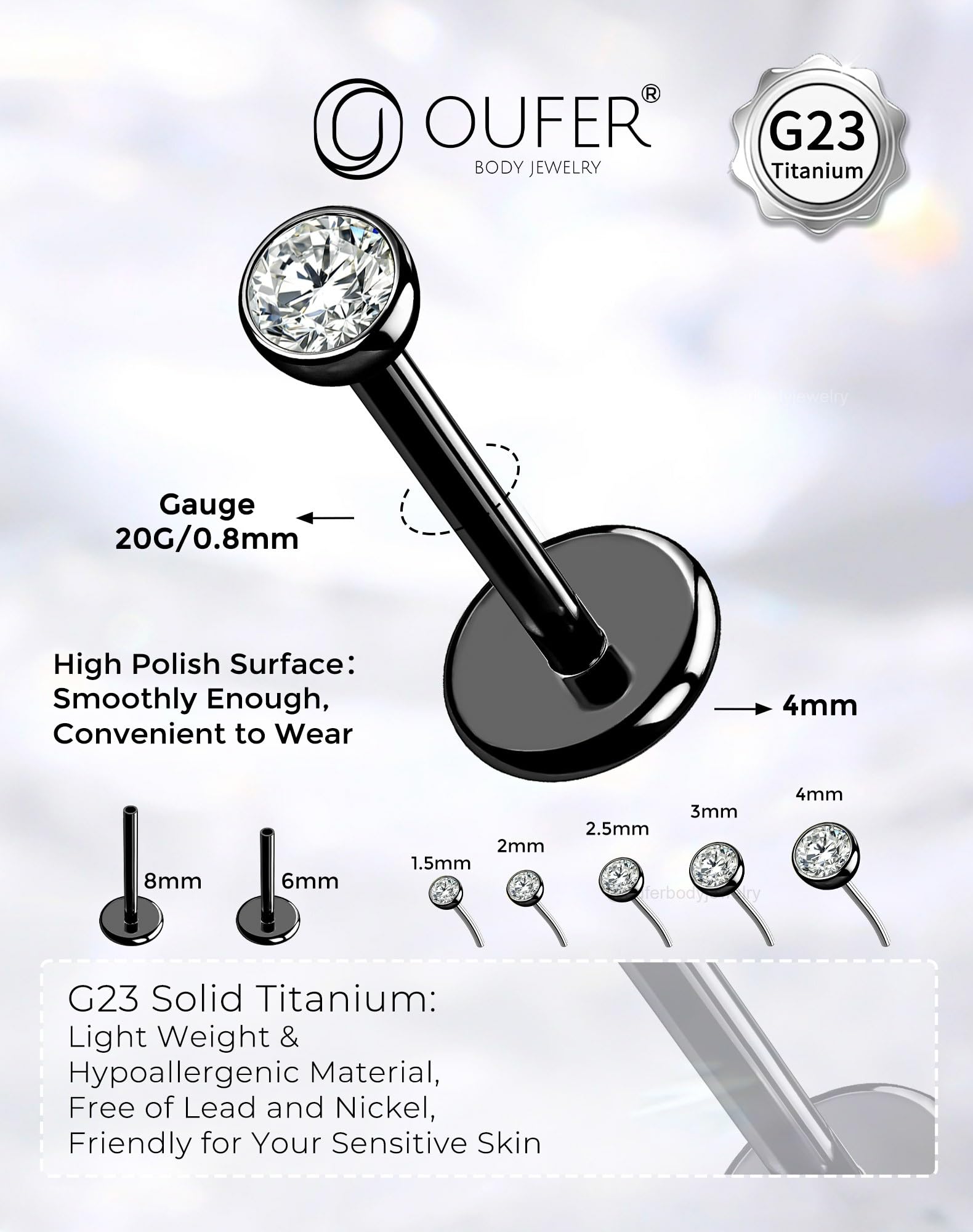 【High G23 Titanium Material】: The earring studs are made of G23 Solid Titanium which is the most basic and one of the safest metal used in body jewelry. The classic design offers a delicate and refined appearance.