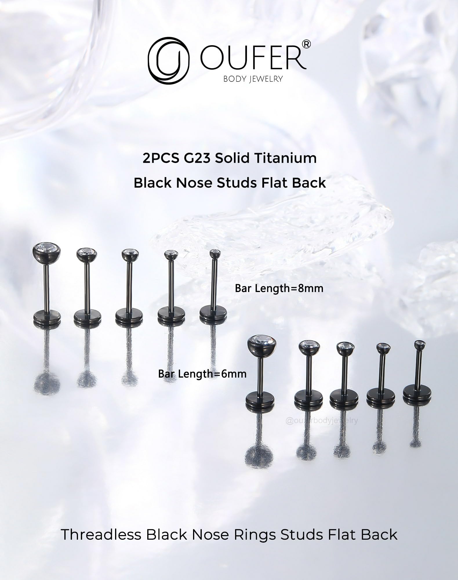 【Standard Flat Back Studs Size】: Gauge = 20g(0.8mm), bar length = 8mm(5/16''), diameter of CZ = 3mm. The flat back studs are normal and standard size for nose helix tragus labret piercing jewelry.