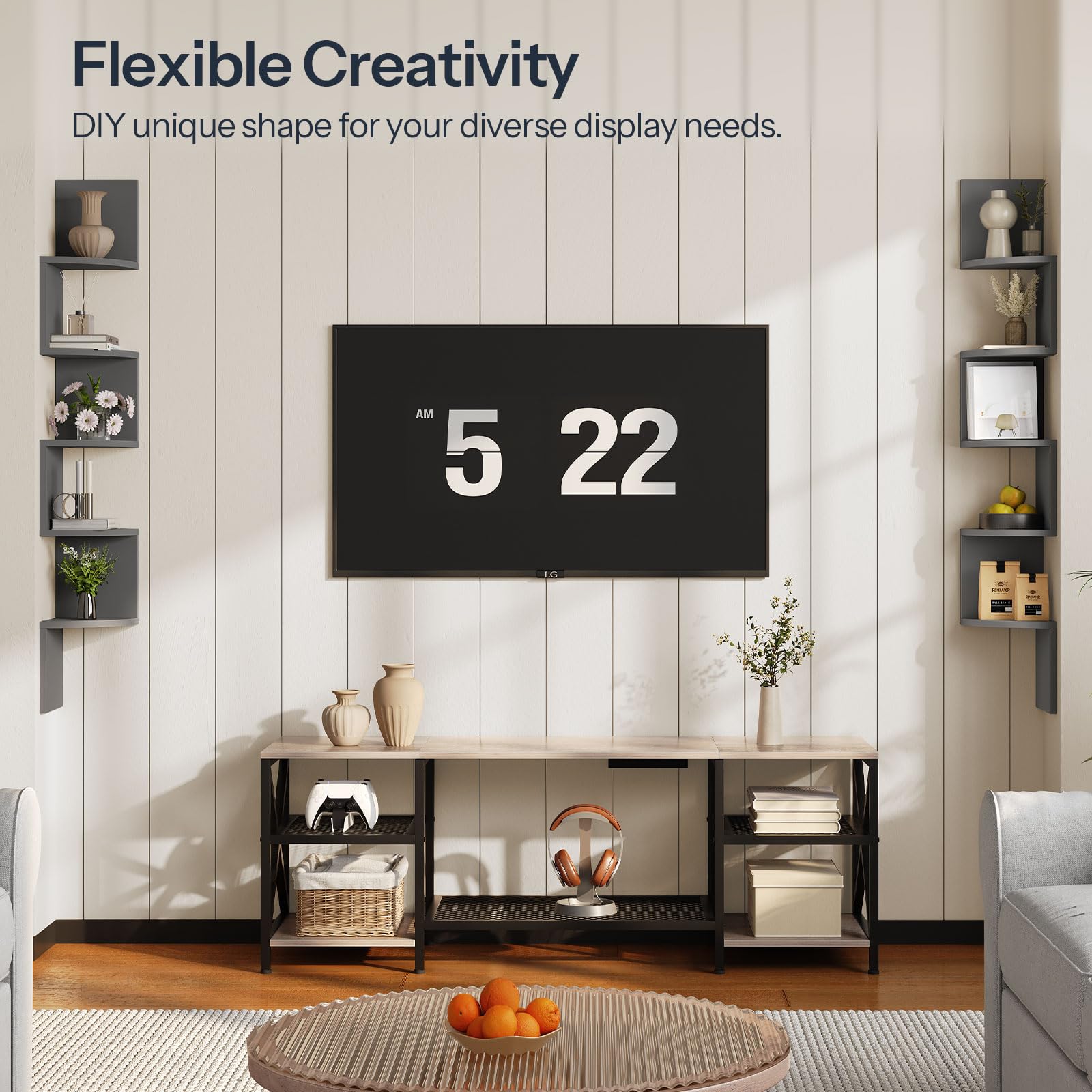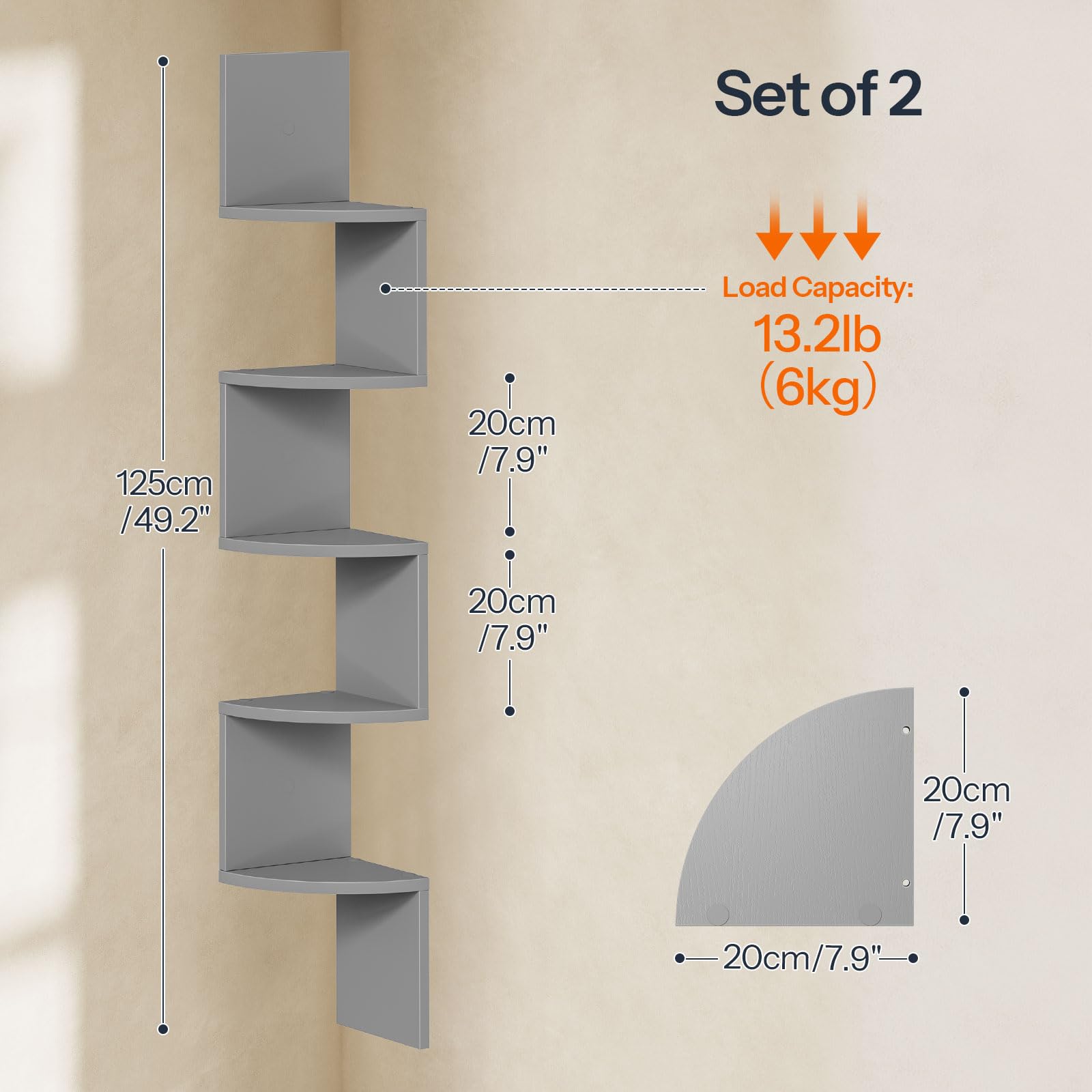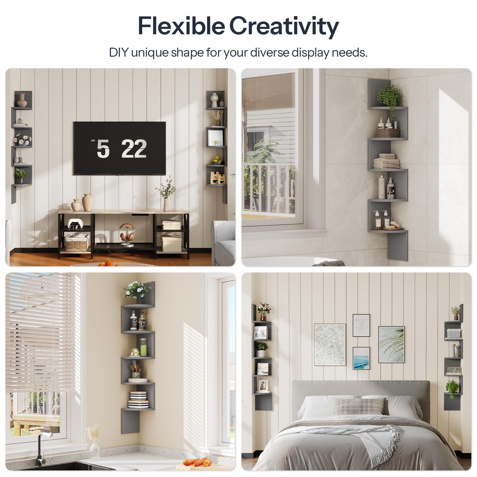 Versatile Duo for Flexible Configurations: This 5-Tier corner shelf wall-mounted offers flexibility to suit your needs. Whether it's for display in your living room, bedroom or for storage in your study, this set of 2 floating corner shelves creates a more organized space and enhances your lifestyle