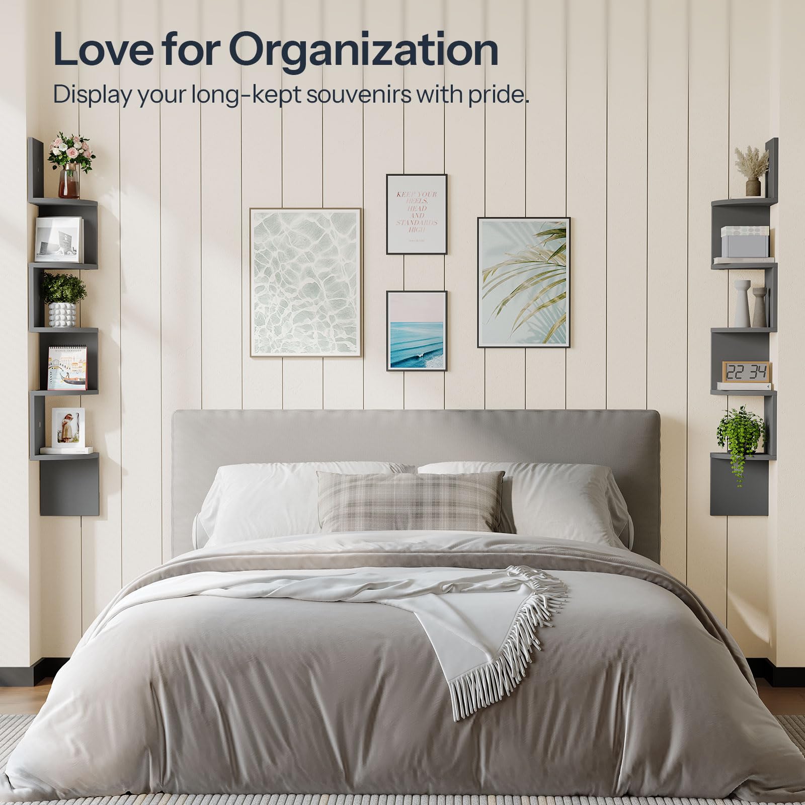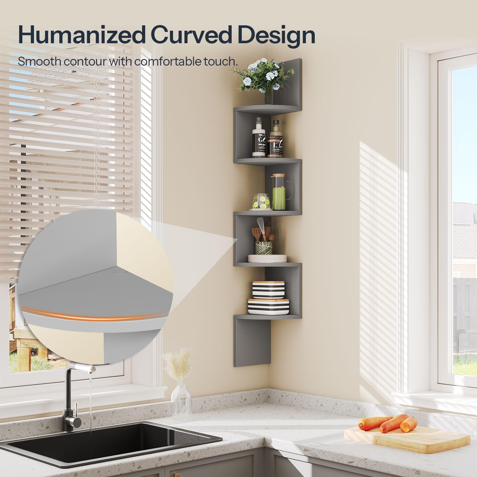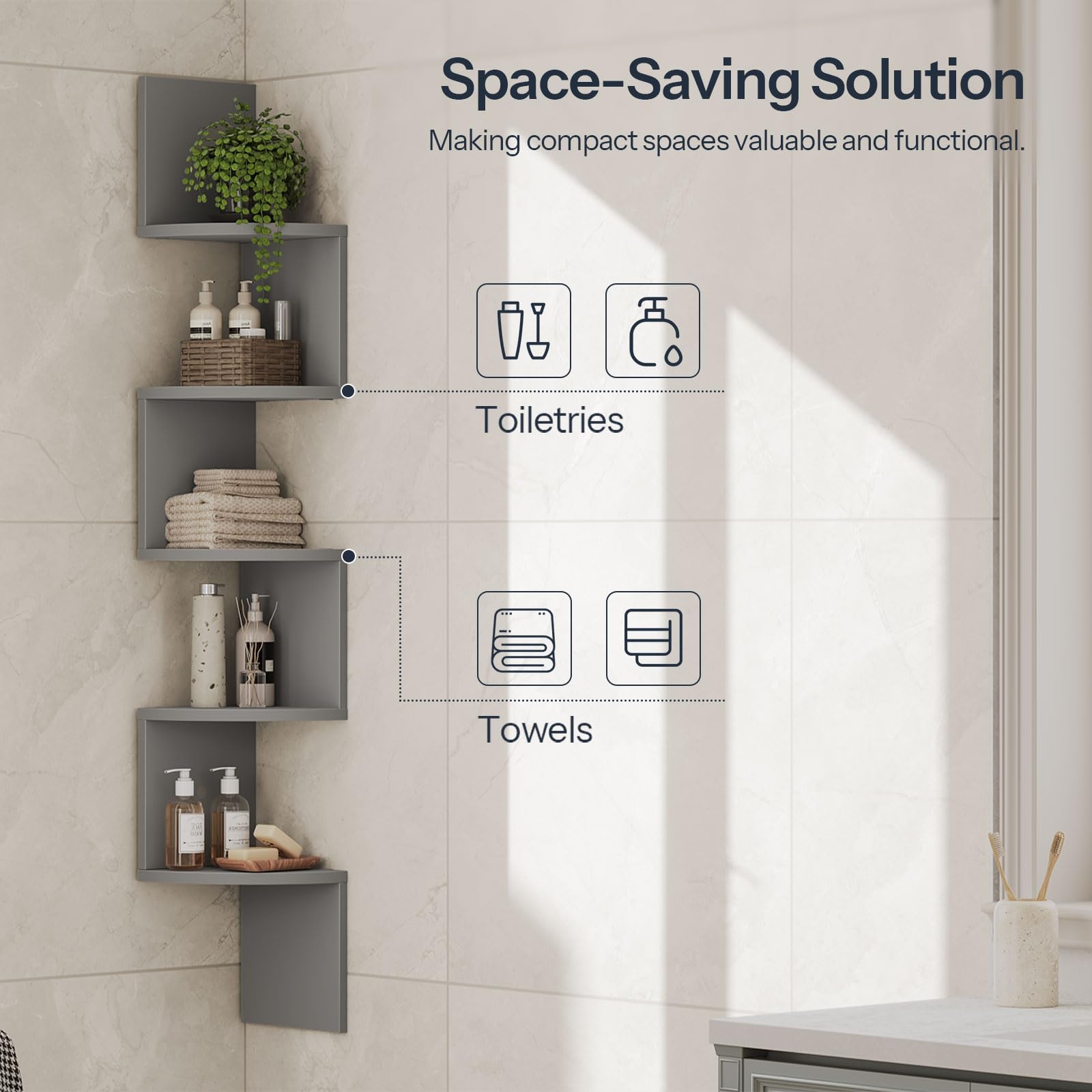 Versatile Duo for Flexible Configurations: This 5-Tier corner shelf wall-mounted offers flexibility to suit your needs. Whether it's for display in your living room, bedroom or for storage in your study, this set of 2 floating corner shelves creates a more organized space and enhances your lifestyle