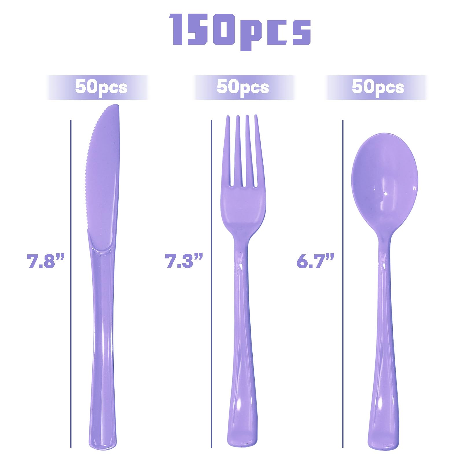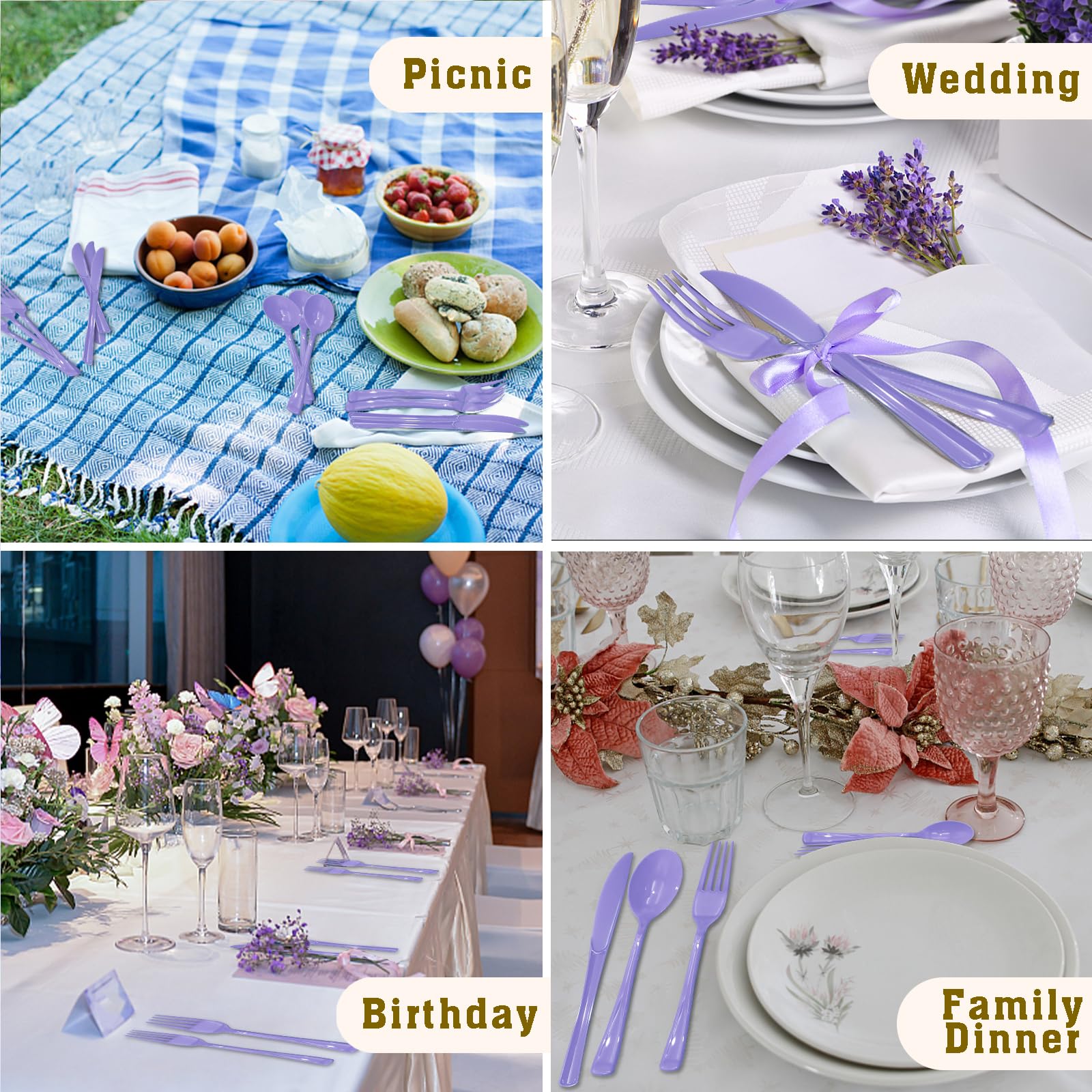 【Elegant Purple Design 】: Lavender is a color full of mystery, which can give people a sense of nobility and elegance. The bright appearance brings a sense of modernity and fashion. Purple plastic silverware is not only practical tableware, but also decorative on the table, adding bright and lively colors to the table.