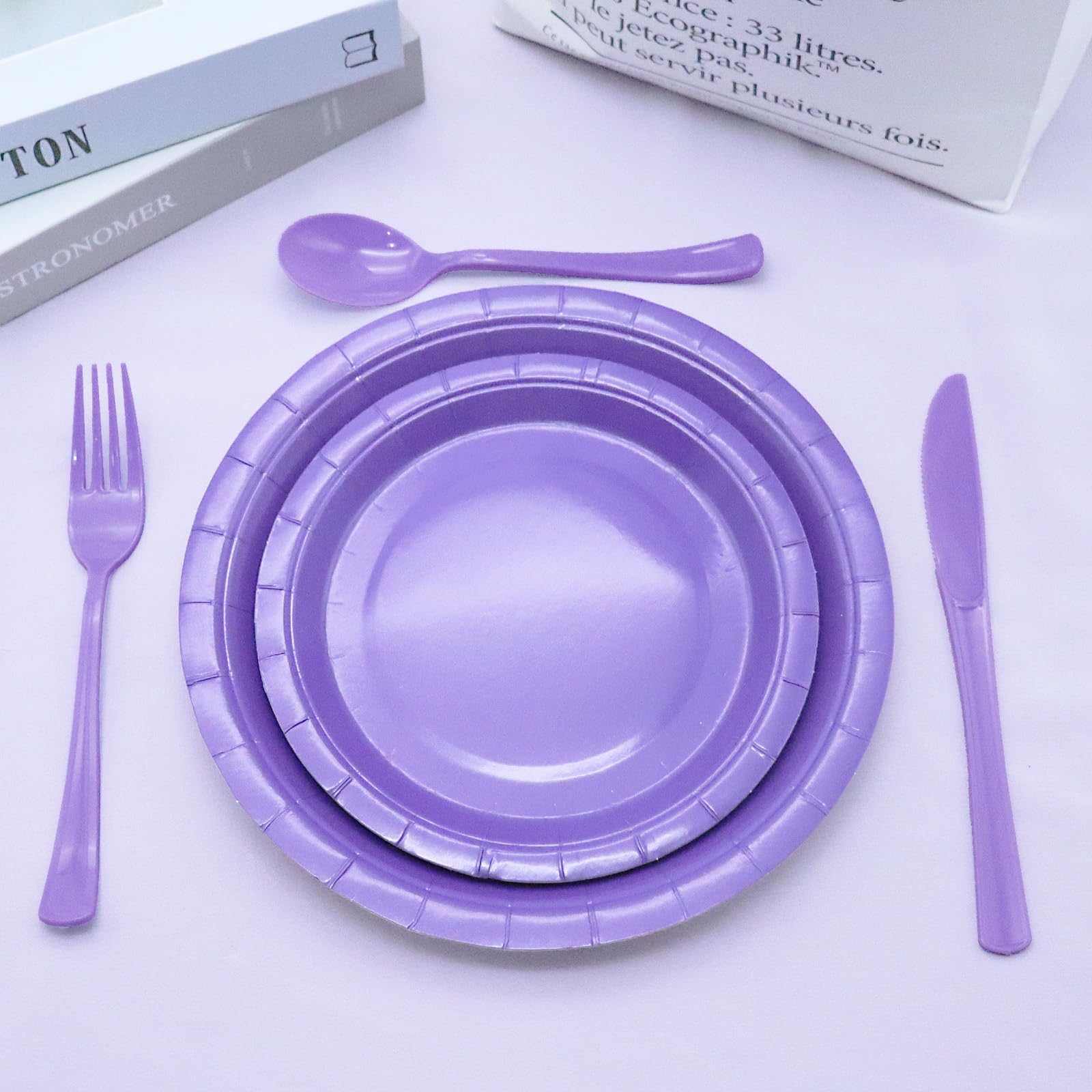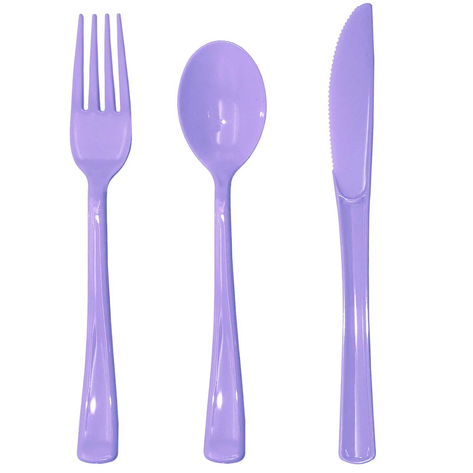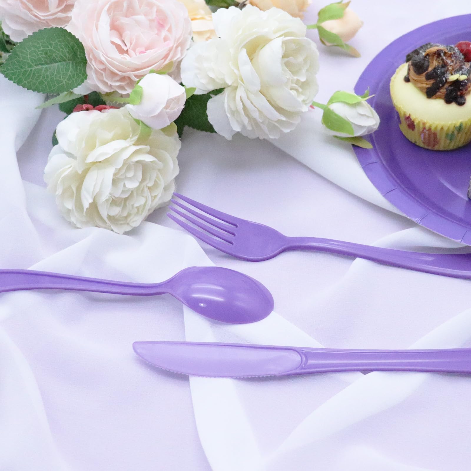 【High Quality Plastic Materials】: The lavender plastic silverware is made of food-grade plastic material, which is non-toxic and harmless and can be in direct contact with food. High-temperature resistant and suitable for all types of food, whether cutting meat or scooping soup, the purple plastic silverware meets customers' needs.