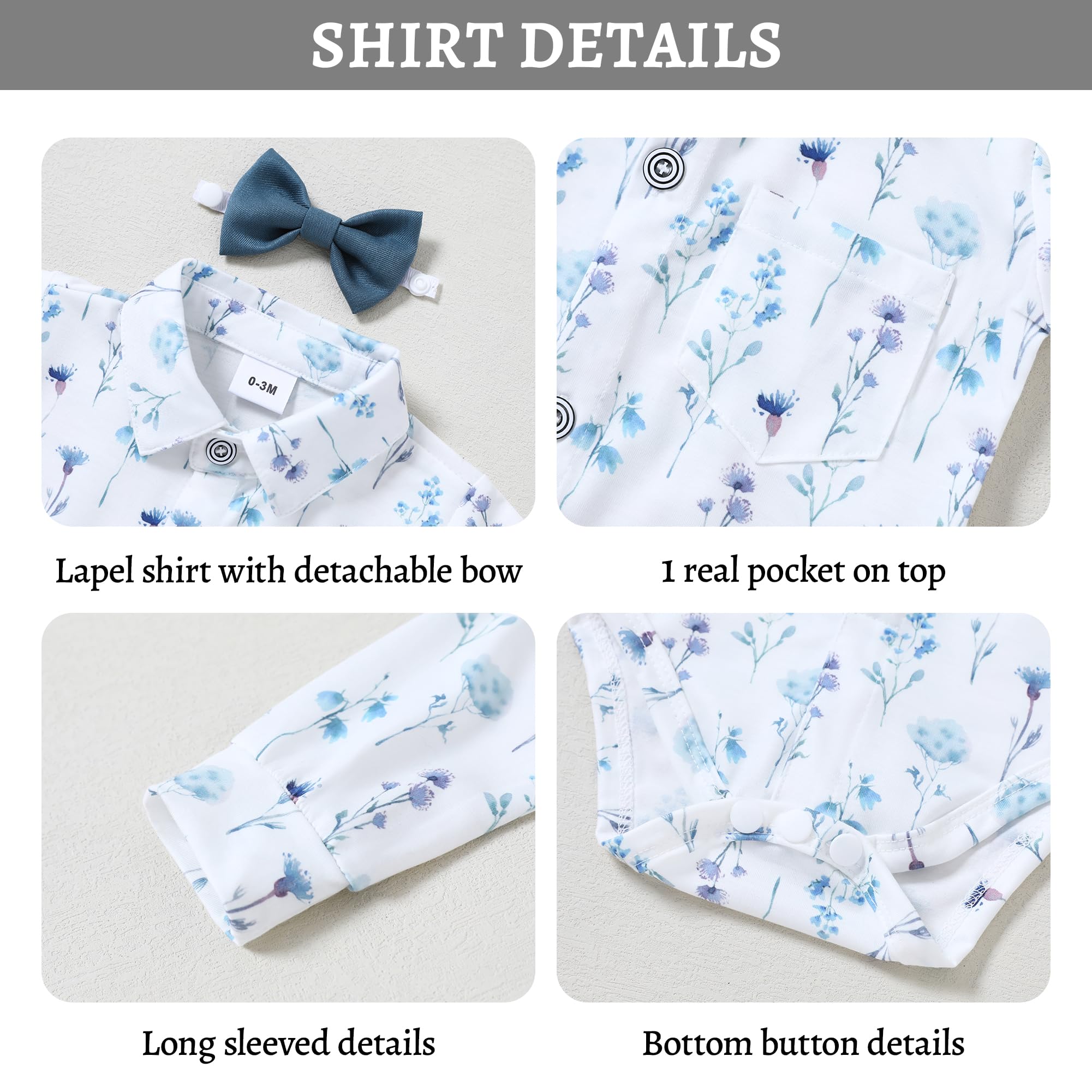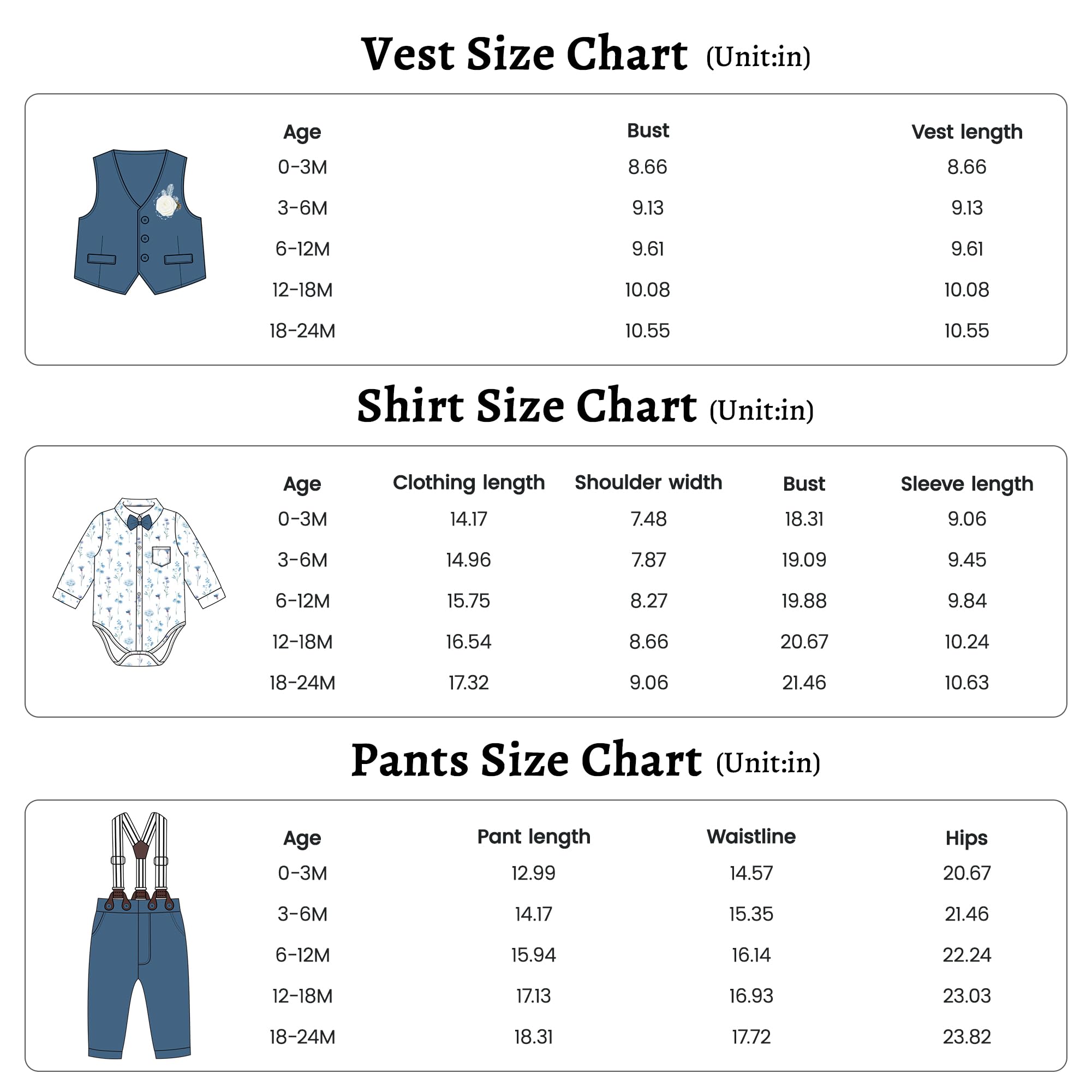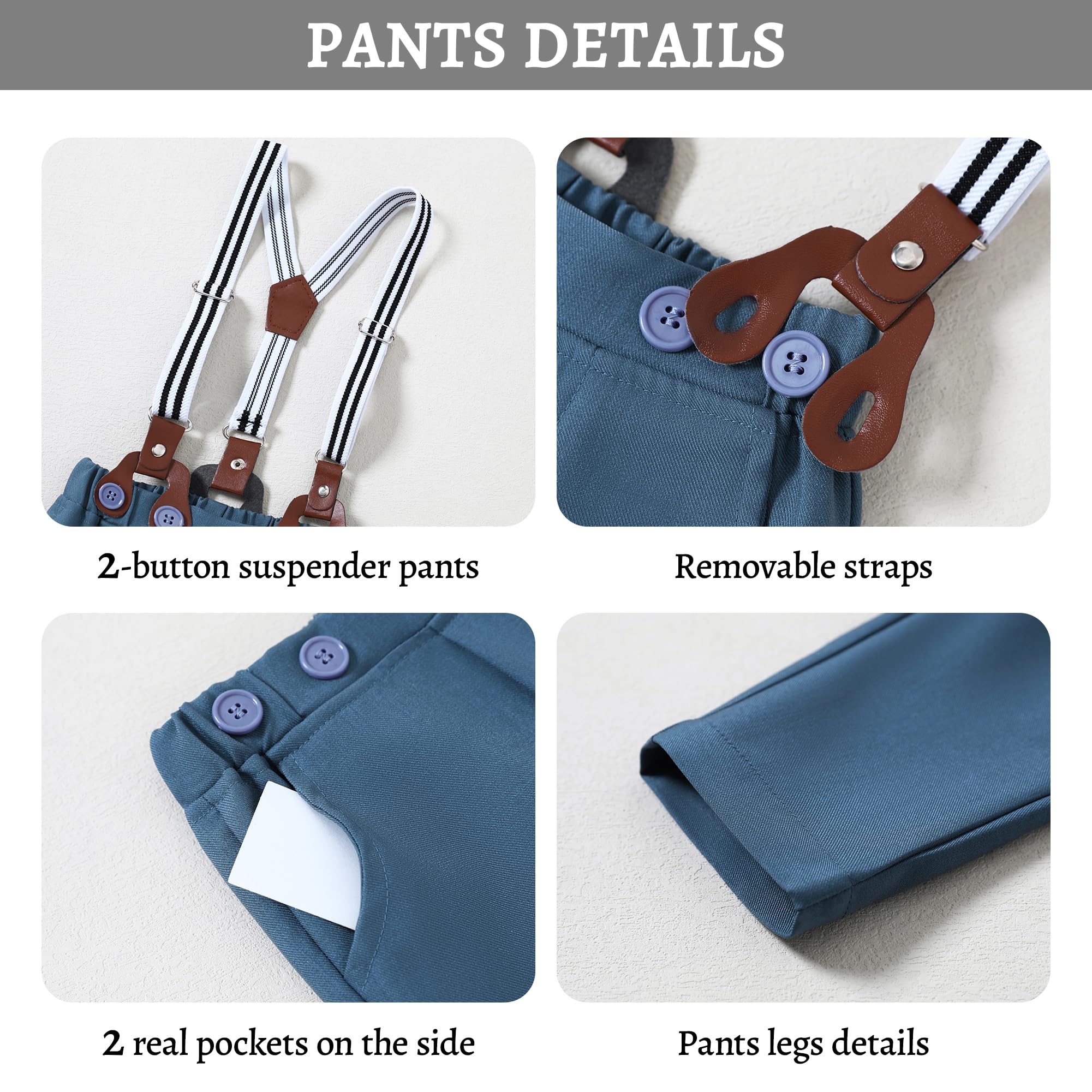 PRACTICAL DESIGN: The baby boy's shirt features buttons at the bottom for quick diaper changes. The pants are designed with an elastic waistband and adjustable straps, easy to put on and take off and won't constrict the baby's movement. Every detail is carefully designed to facilitate moms' daily care.