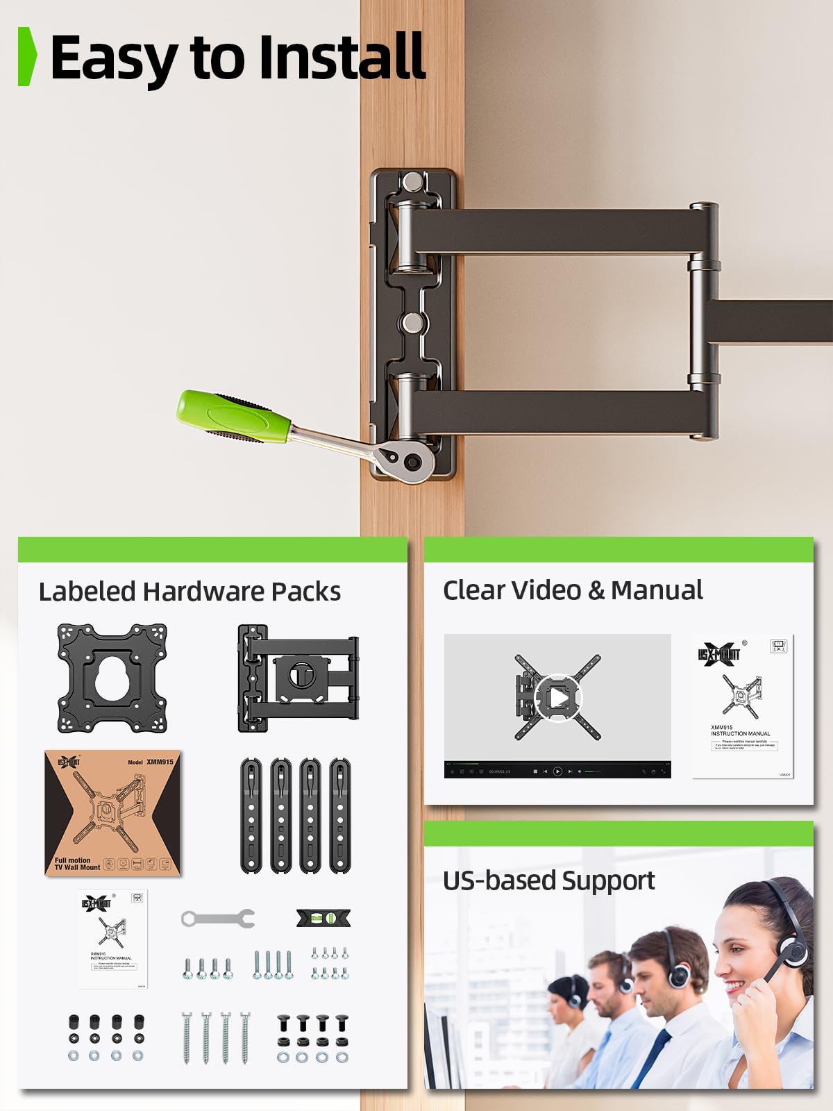 Universal TV Wall Mount: Perfect for most flat-screen TVs, including sizes 26", 32", 40", 43", 50", 55", and 60". The extended arms can be mounted in different positions depending on the TV VESA holes. Use USX MOUNT Full Motion TV Mount to save space and achieve the ideal viewing angle for a comfortable home theater experience.