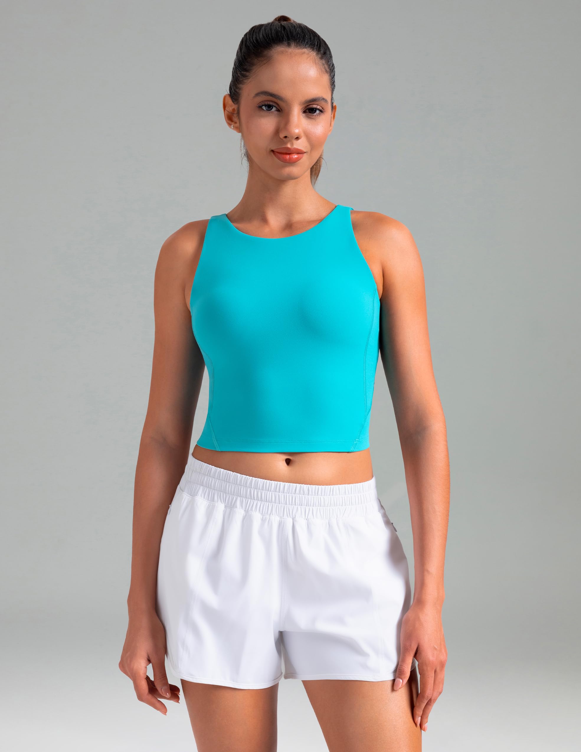 Designed in a Perfect Crop Length that pairs seamlessly with high-waisted leggings or shorts, perfect for yoga, running, and gym sessions