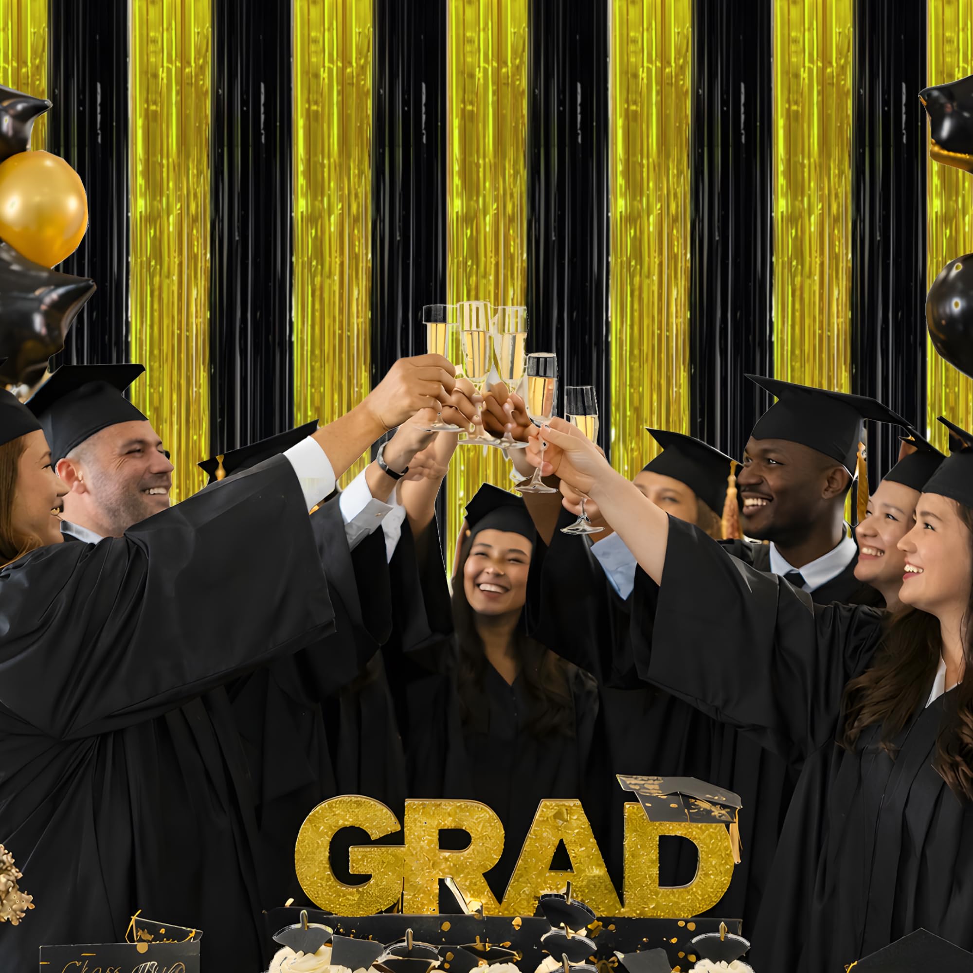 Black & Gold Party Decorations: This black and gold metallic foil fringe curtain is designed for Graduation 2026 celebrations, featuring a classic and elegant color combination that perfectly matches your Class of 2026 graduation decorations theme.