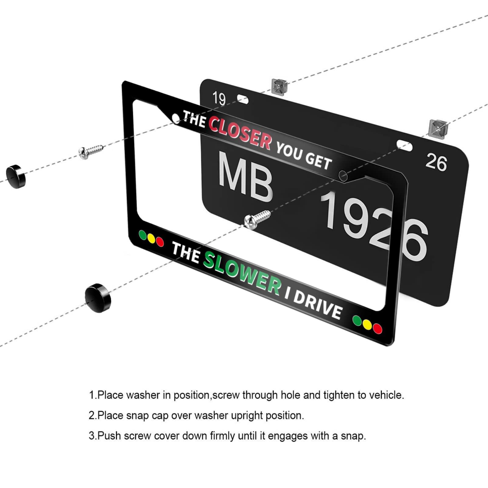 With Accessories: 2 screws, 2 screw caps, 2 washers. Easy to install, can be easily installed, 1 set of 1 can be installed on the front license plate or rear license plate.