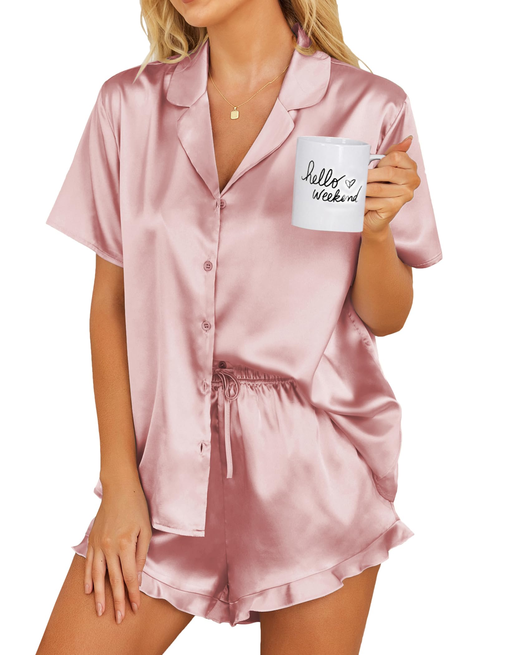 【High Quality Material】: The Super Soft Silk Pajama Set is made for 95%polyester5%spandex. Ultra Soft Silk Ekouaer Sleepwear, brings you more Breathble, Comfortable and Skin-Friendly Feeling