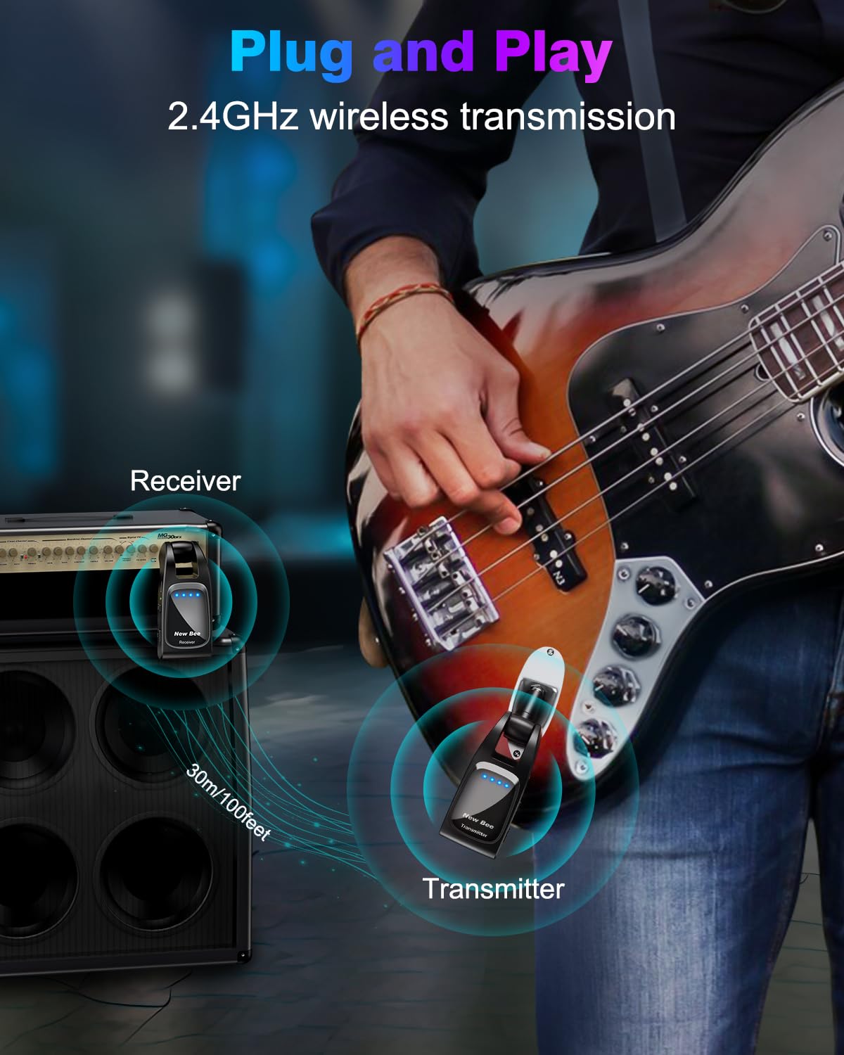 High-Grade Wireless System——Clear Quality Signal Transmission.Our guitar wireless system is optimal for more stable and high-quality audio transmission. Low noise, low latency, no interference, over 20 meters transmission distance.