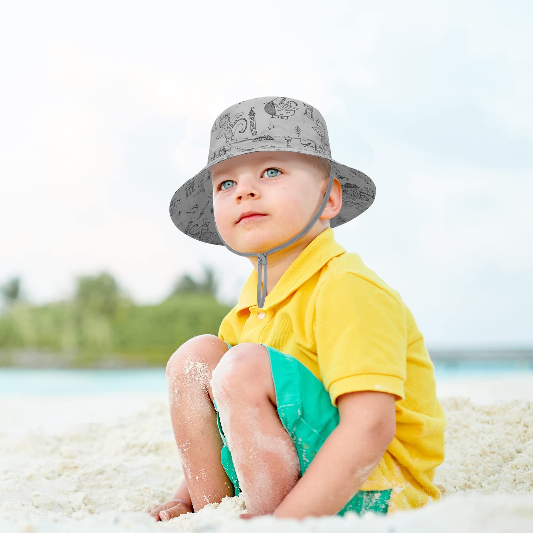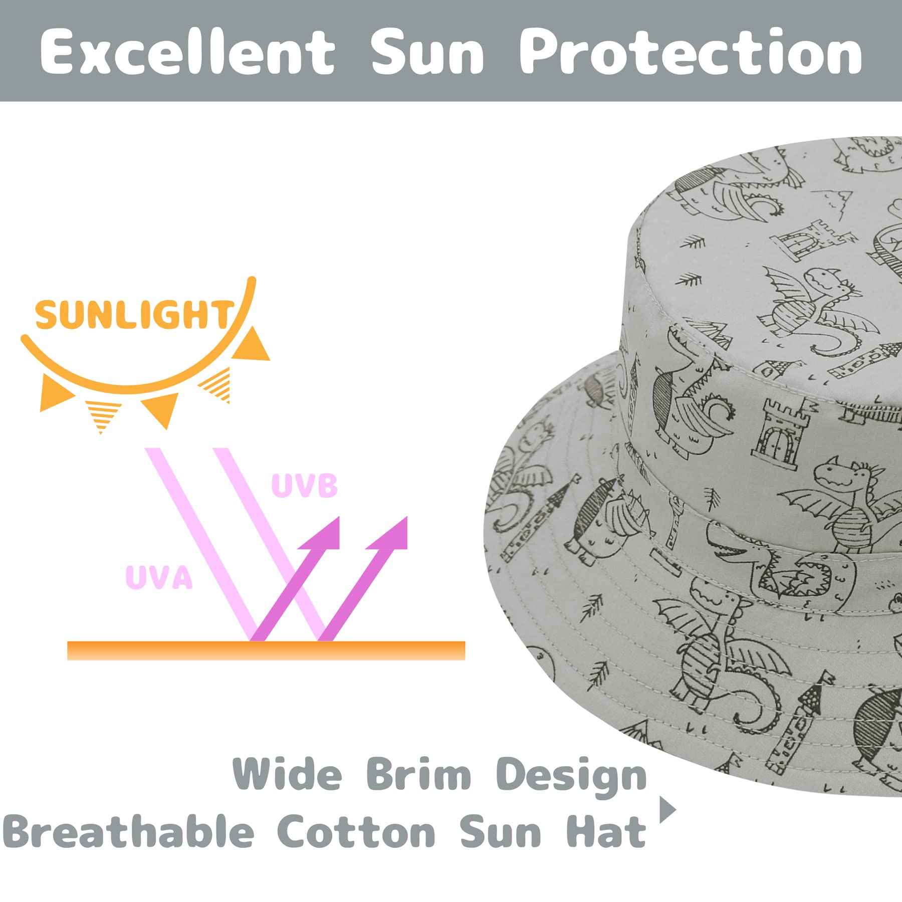 ADORABLE & EASY MATCHING: These baby sun hats are designed with soft color and lovely dinosaur patterns, which are easy to pair with any baby outfits. Your little baby can wear this baby bucket hat on sunny days and will always be in style. The perfect accessory for baby in summer.