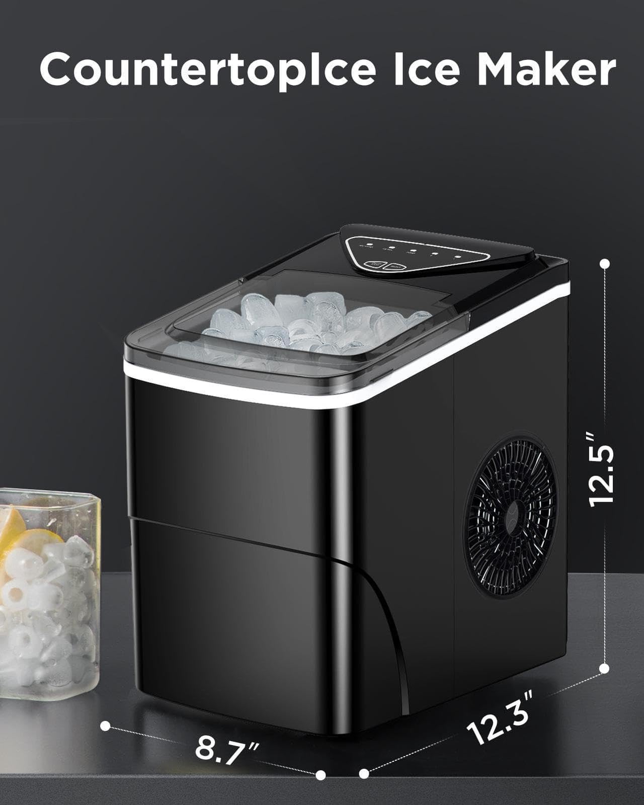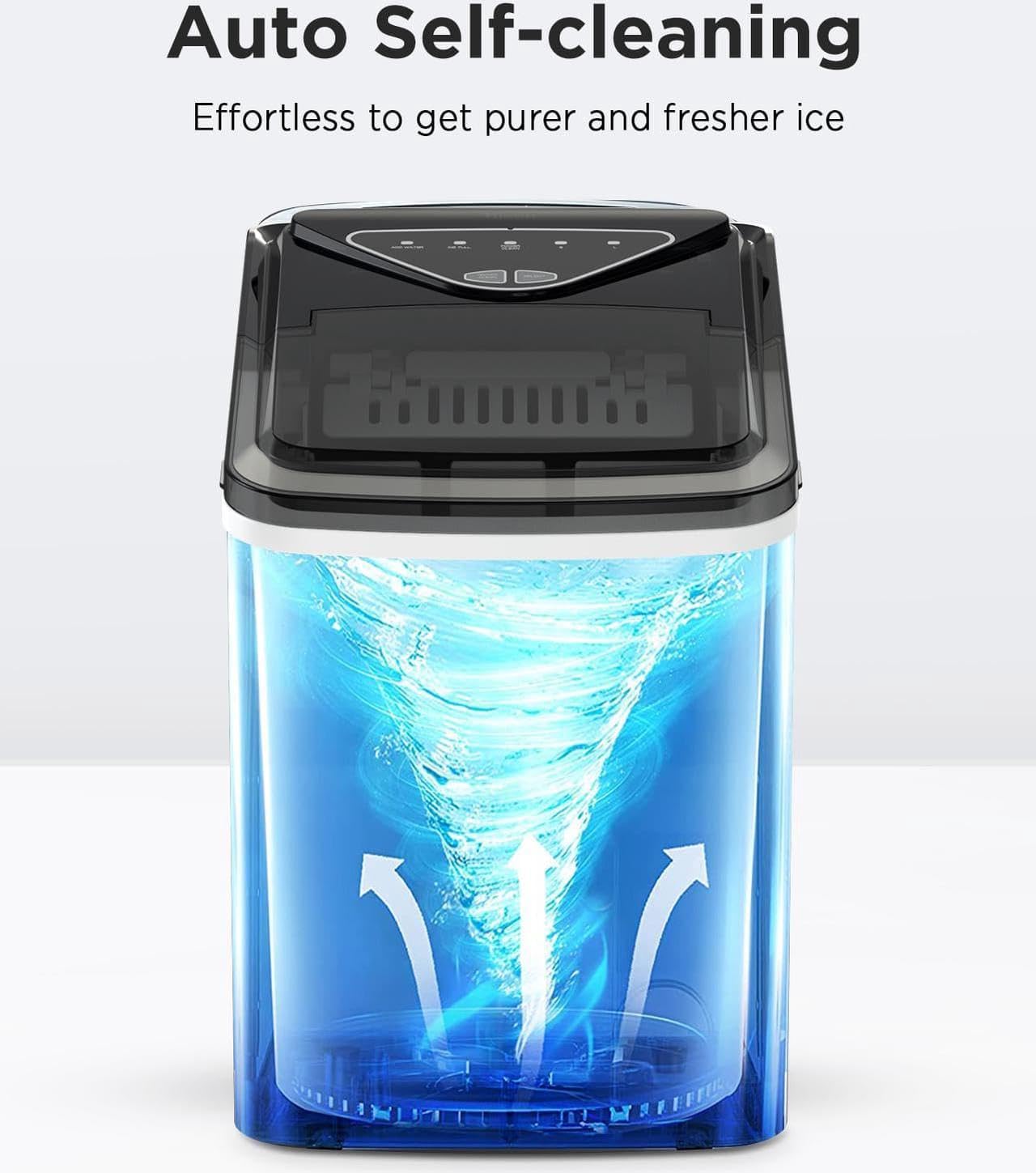 Convenient Self-Cleaning Feature - Keep your ice maker in top condition with the one-touch self-cleaning function. Just hold the ON/OFF button for 5 seconds to start the cleaning cycle. Compact and portable, it measures 12.3 x 8.7 x 12.5 inches, making it easy to fit in any space.