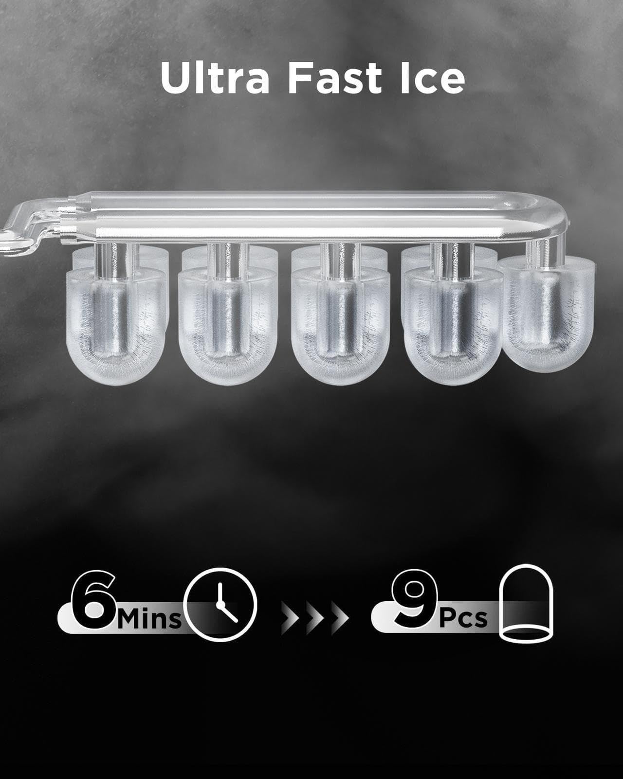 Rapid Ice Production - Enjoy fresh ice in a flash! The Totnz ice maker produces 9 bullet-shaped ice cubes in just 6 minutes. With a 2L water tank, it can generate up to 26 pounds of ice in a single day, perfect for any occasion.