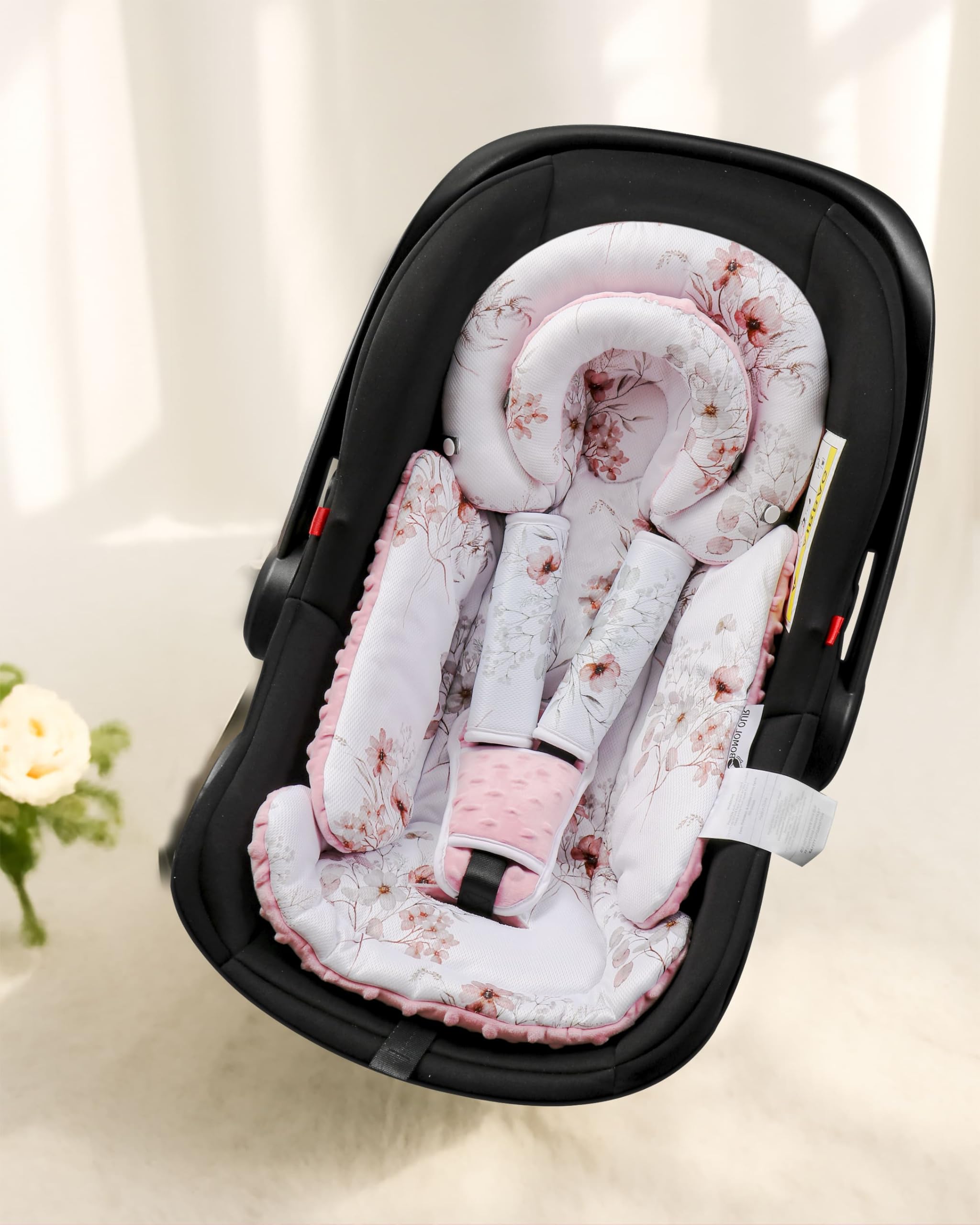 Universal Fit & Extra Safety: The infant insert compatible with Graco, Doona, Nuna, Chicco, 4moms Mamaroo, Uppababy, and most brands infant car seats. Includes 2 padded strap covers and 1 buckle cover to protect baby’s shoulder and belly from strap rubbing, ensuring baby's safety and comforty