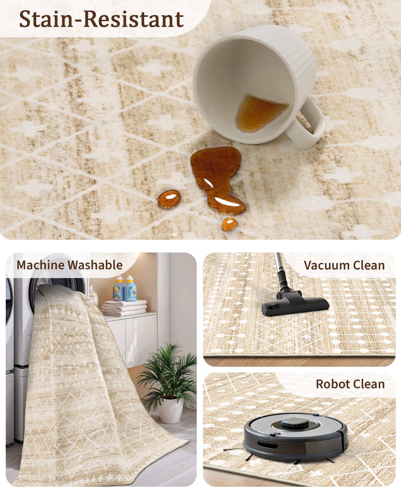 Machine-Washable Rug: This slip-resistant carpet only requires regular vacuuming to remove dirt and debris. When a deeper clean is needed, our washable rug is machine washable, making daily maintenance simple and convenient.