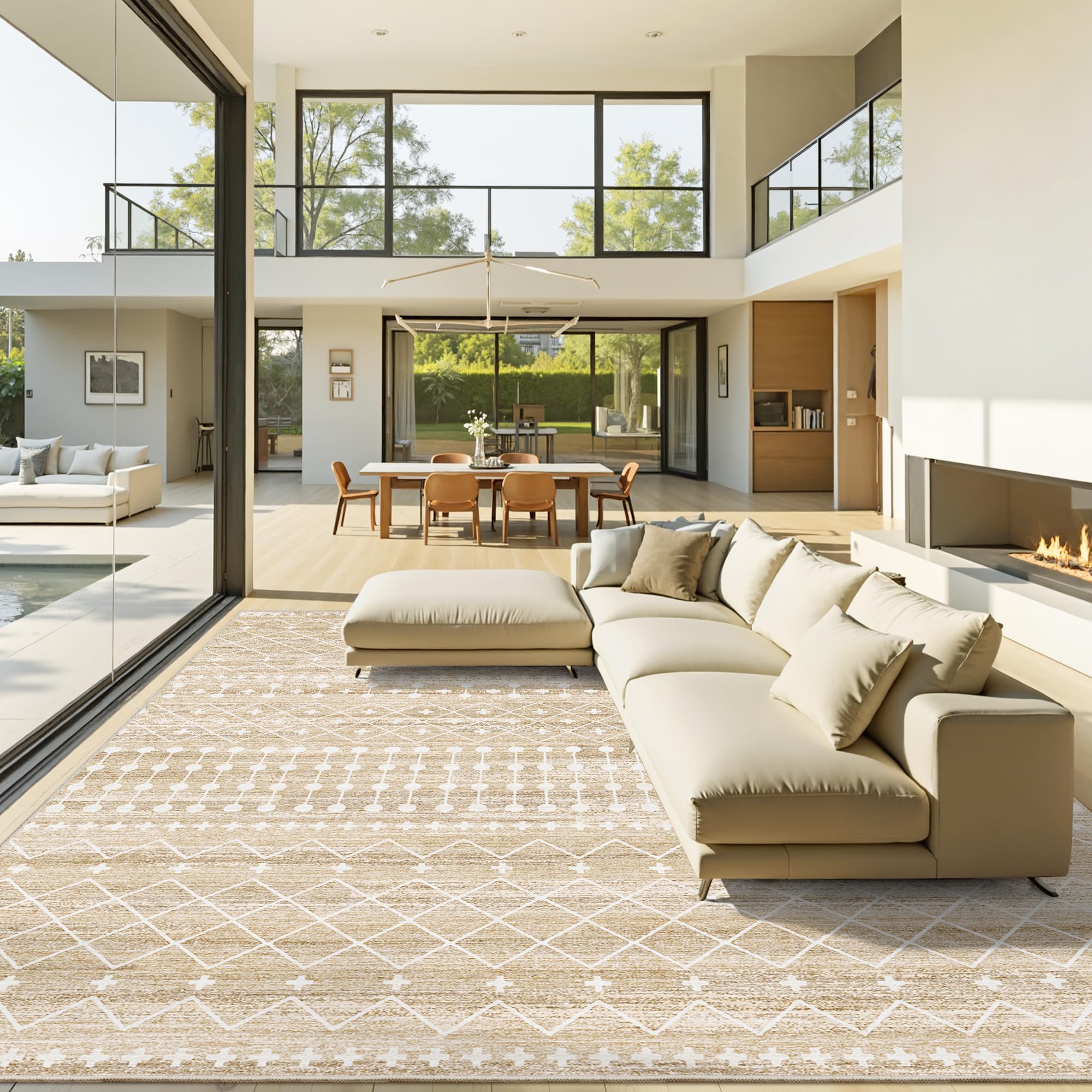Moroccan-Style Design: This area rug features a Moroccan-inspired pattern, combining geometric lines and shapes that effortlessly complement any interior design style.