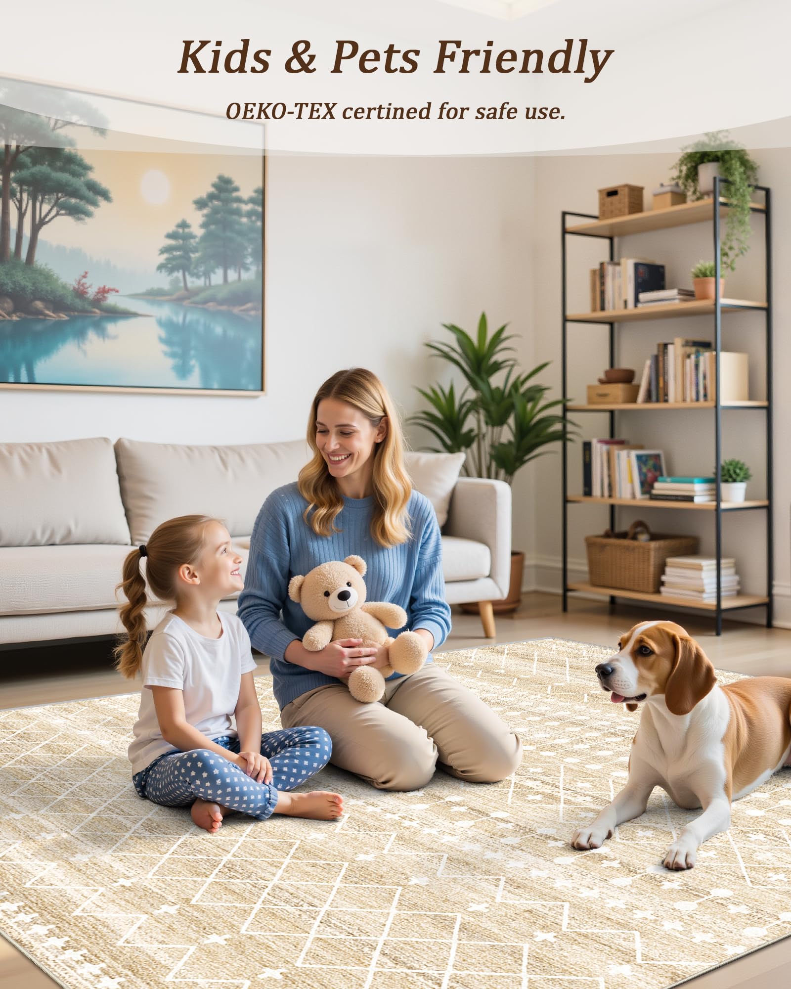 Non-Slip Backing Area Rug: Our rugs for living room features a non-slip TPR backing that helps keep the rug in place and securely fixed to the floor, reducing the risk of tripping.