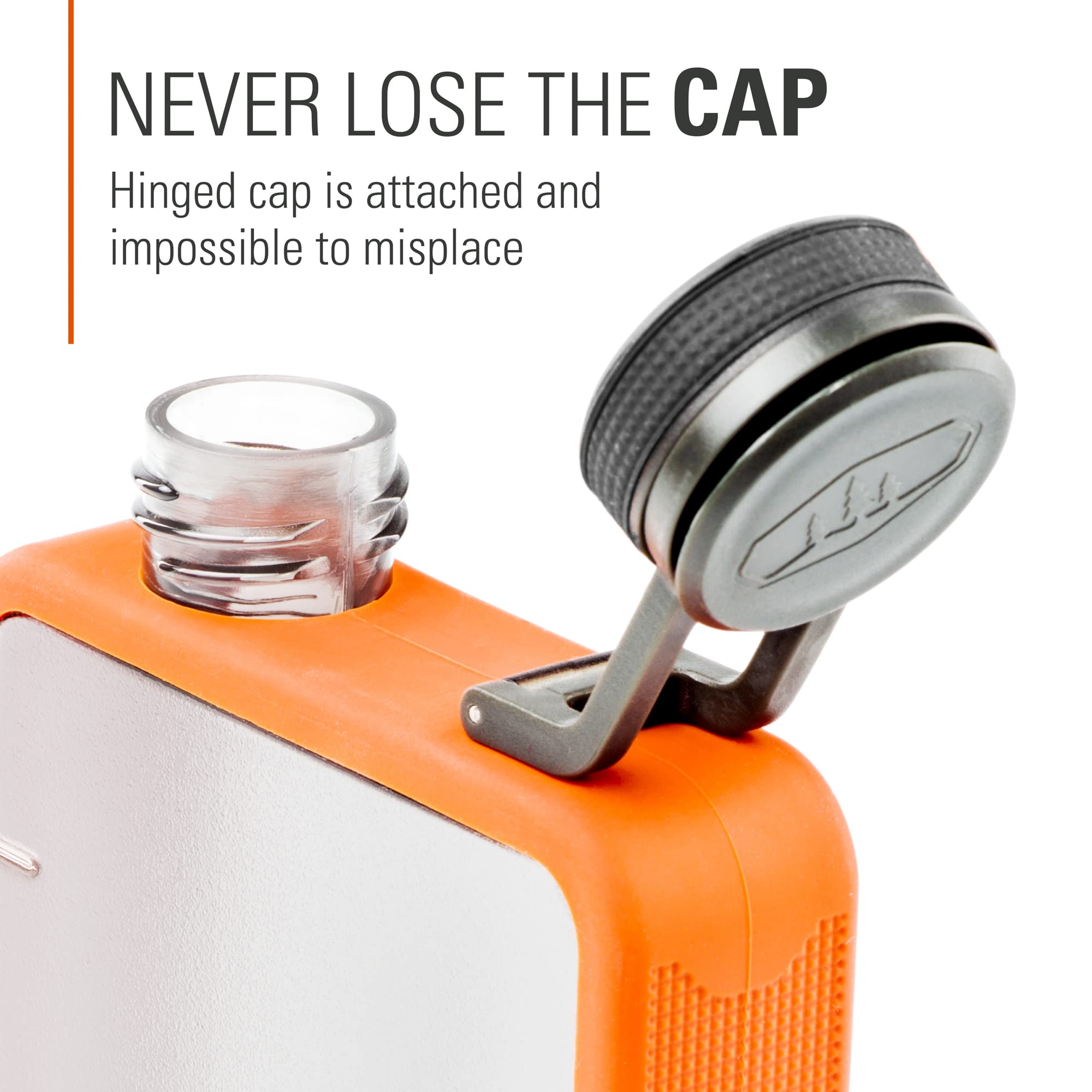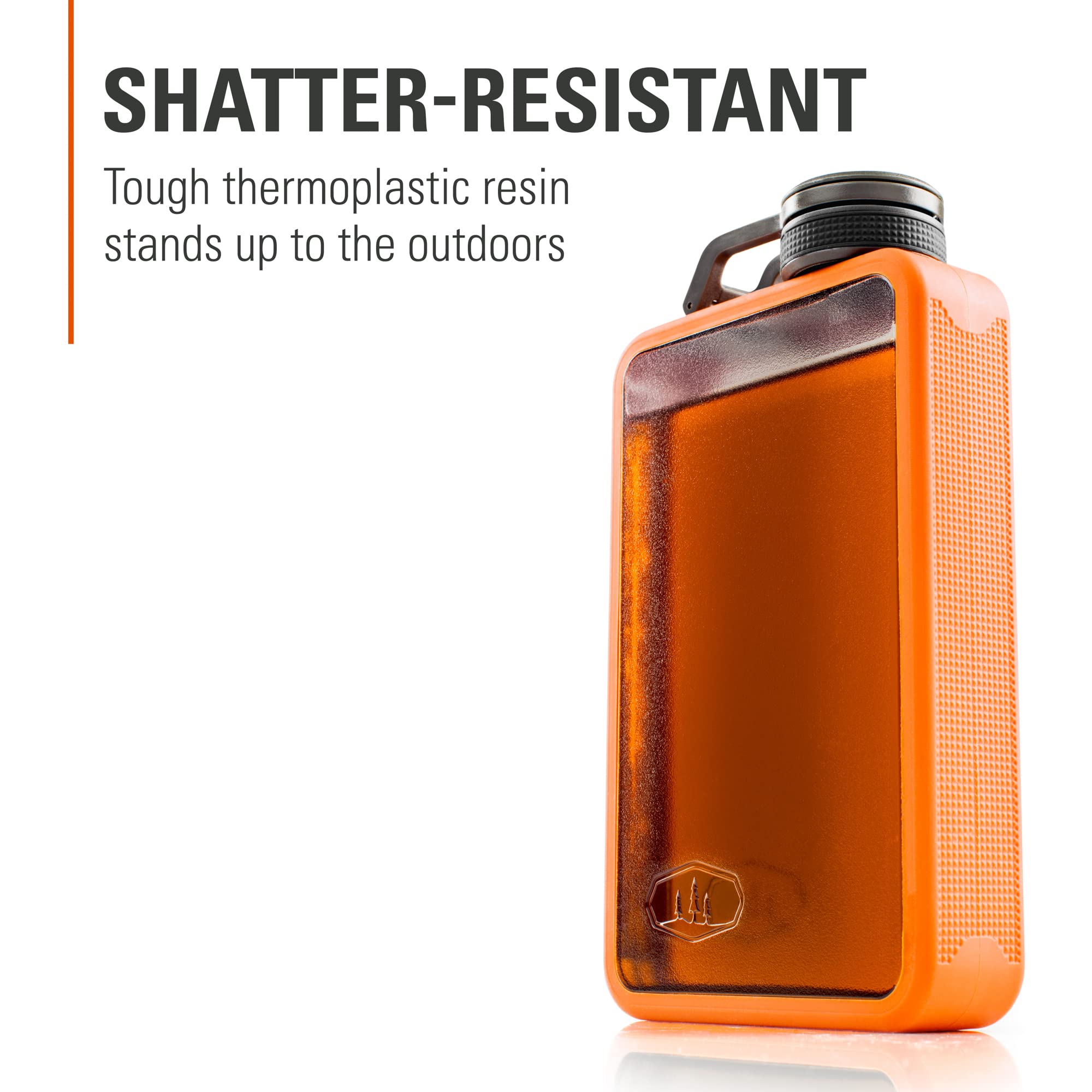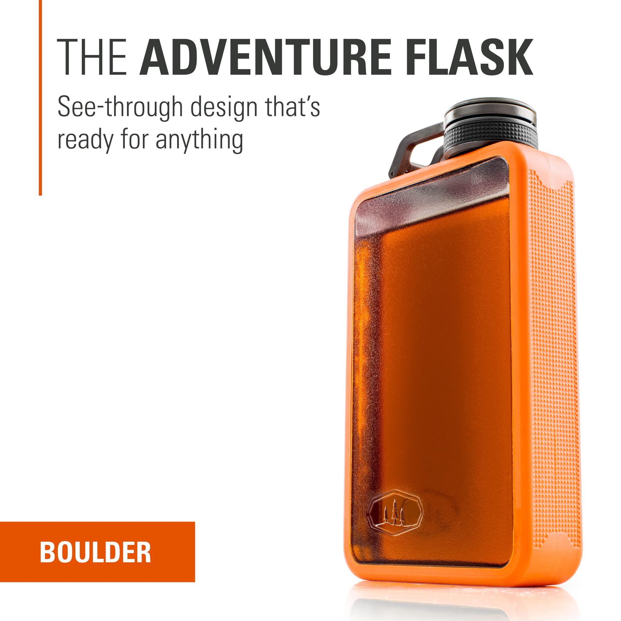 NO METAL: Tough and shatter-resistant, the Boulder Flask can stand up to nearly any outdoor adventure; Thermoplastic resin body keeps your drink of choice intact