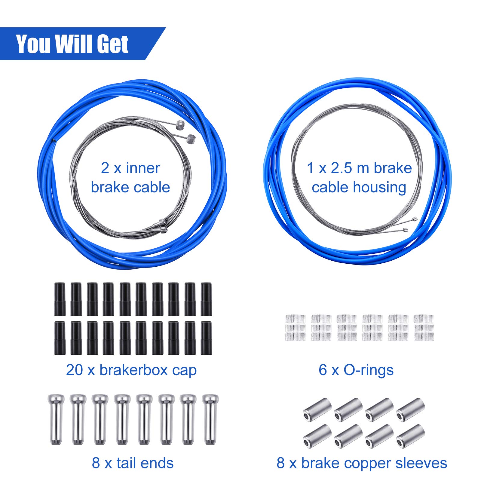 Ample quantity: you will receive 1 piece 2 m transmission cable shell (4 mm), 2 pieces inner variable speed cable, 1 piece 2.5 m brake wire outer tube (5 mm), 2 pieces inner brake cable, 6 pieces O rings, 8 pieces tail ends, 8 pieces brake copper sleeves, 20 pieces cable ferrules, large amount of quantity