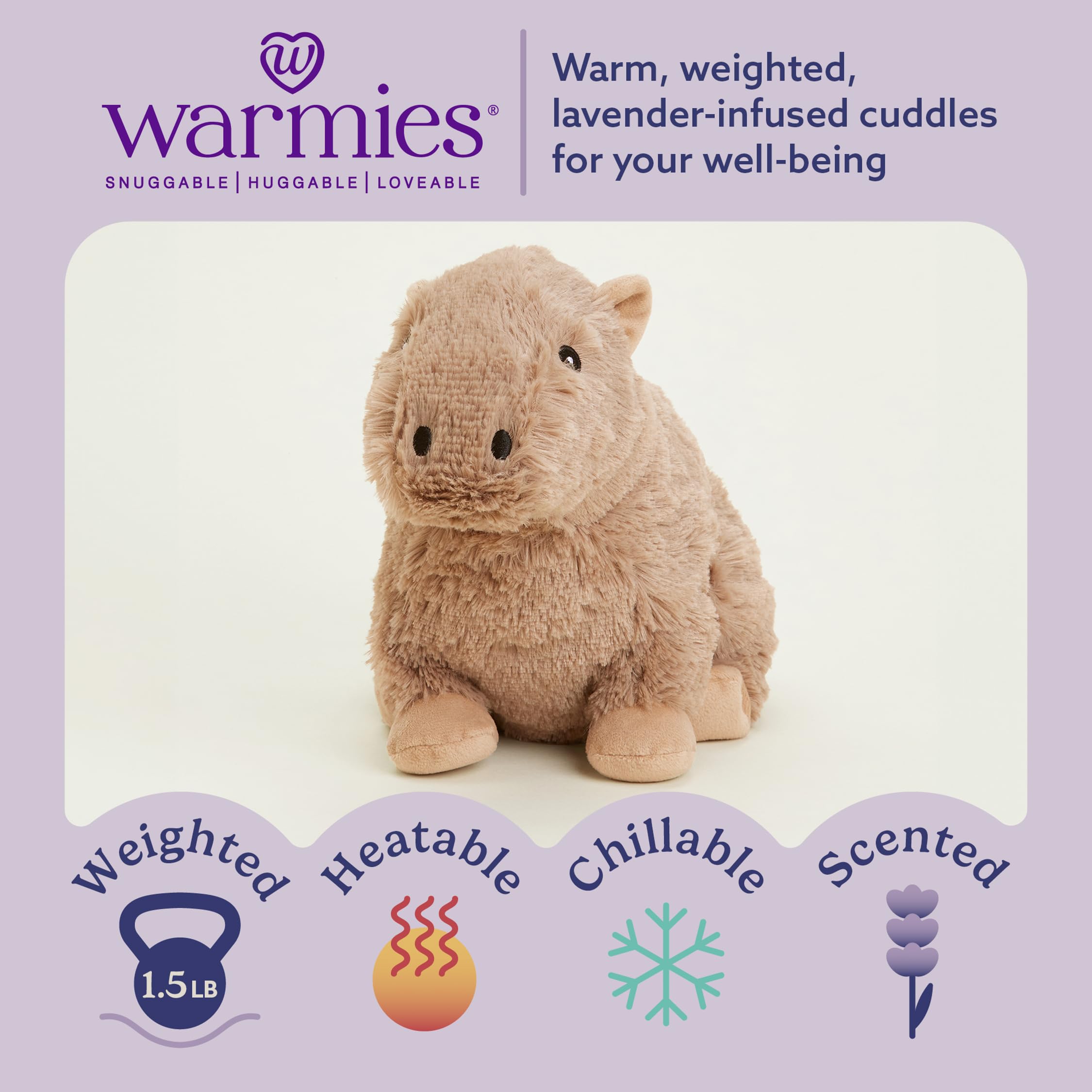 Warmies Microwavable Stuffed Animal: Capybara is a snuggable, huggable, lovable weighted plush toy for all ages that can be easily heated to provide hours of soothing warmth or chill in the freezer for a refreshing cool touch. Perfect for comfort and snuggles. 13 inches tall, 1.5 lbs.