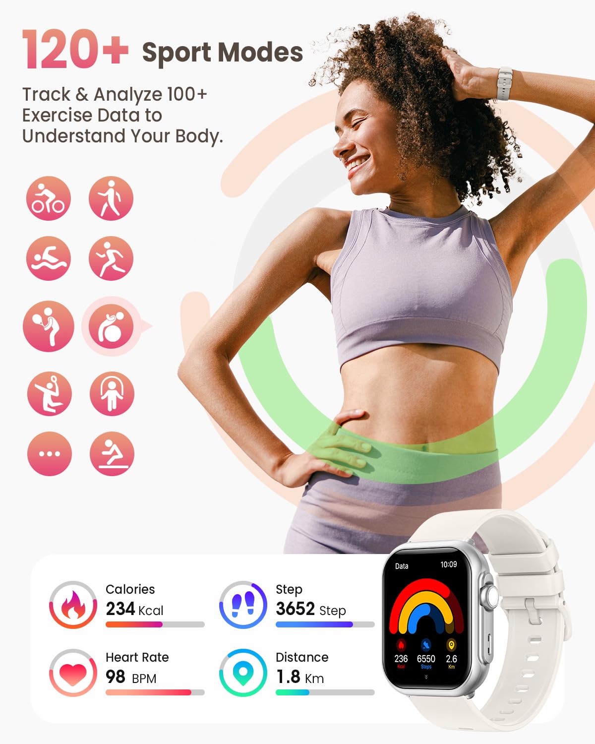 120 Sports Modes & 5ATM Waterproof: Fitness tracker features 120+ sport modes including running swimming and yoga with GPS tracking via your phone.Fitness watch accurately measures calories steps distance and duration The 5ATM waterproof rating makes it perfect for swimmers and outdoor enthusiasts Whether you are a marathon runner or a weekend hiker this watch for men and women adapts to your active lifestyle