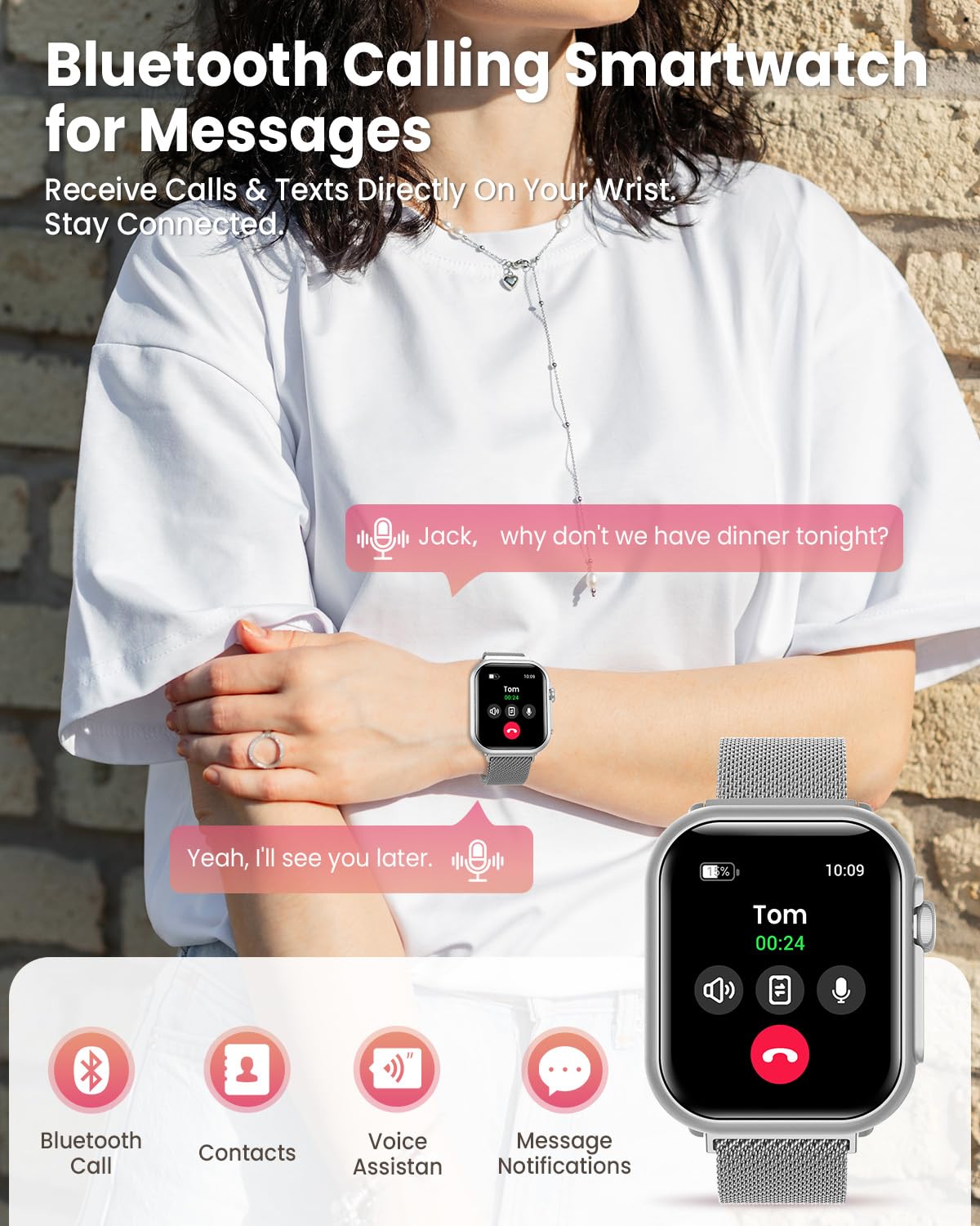Health Activity Tracker: Watches for women track Heart Rate, Blood Oxygen (SpO2), Blood Pressure, and Sleep (deep/light/REM analysis,get a better sleep habit by viewing your sleep data) 24/7.Note: Sleep is recorded from 9:30 p.m. to 12:00 p.m. the next day; going to sleep too early or too late may not be accurately recorded. Perfect for health-conscious users, seniors, or athletes optimizing performance